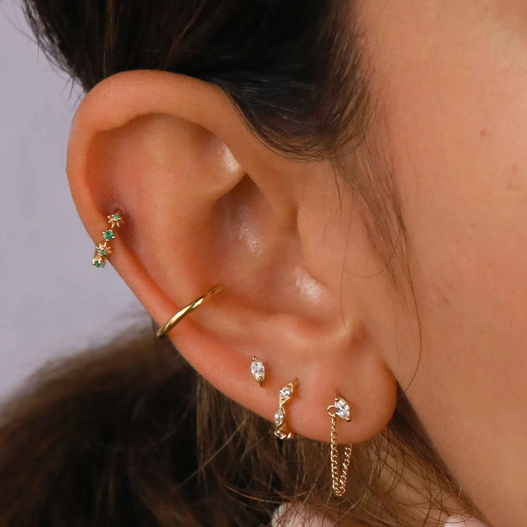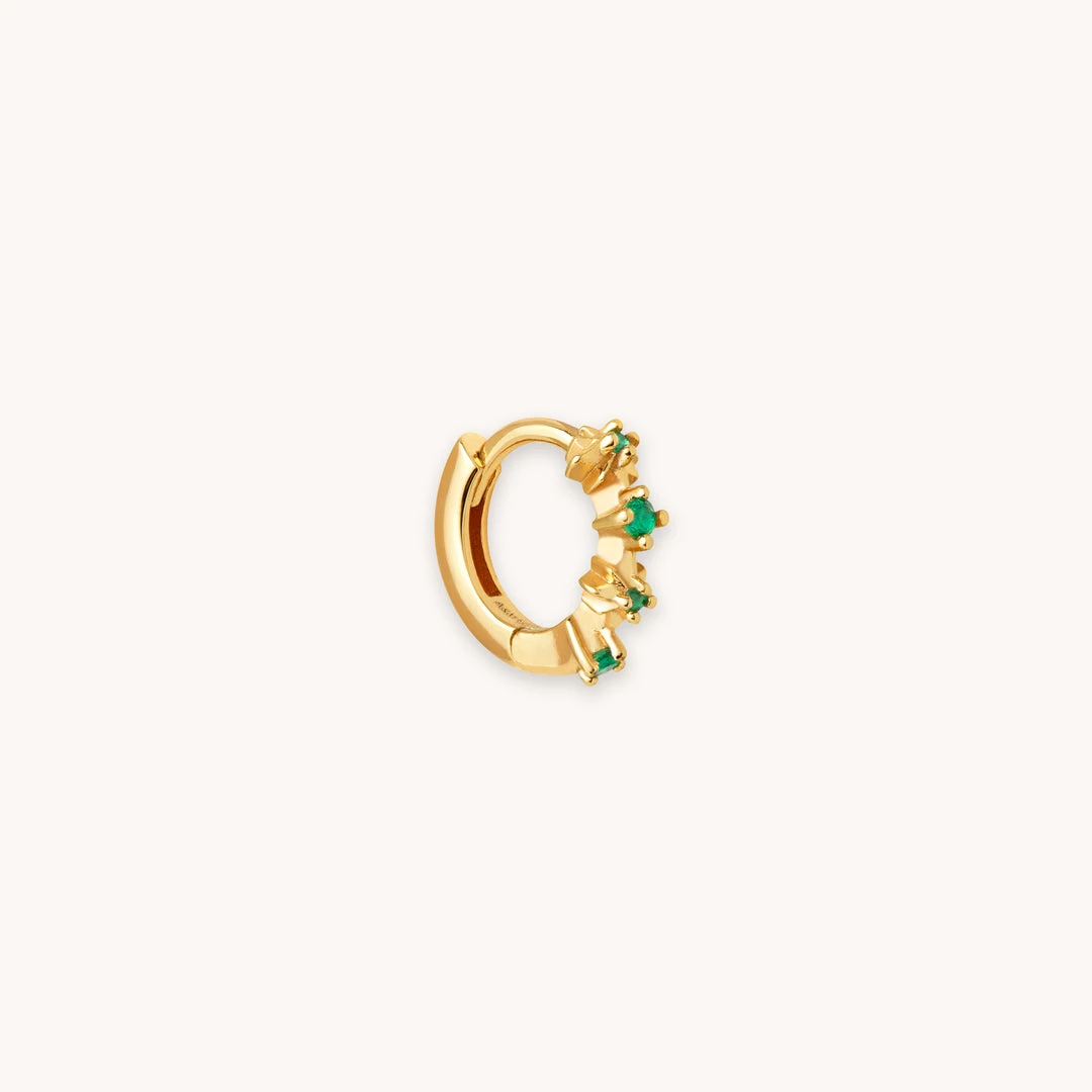 The Cosmic Emerald Clicker in Gold will make your other earrings jealous. If you’re looking for a dainty cartilage hoop, this one features emerald green cubic zirconias to add a pop of colour. You can wear this in your tragus, upper lobe, helix and forward helix piercings – so it will fit in with your existing ear stack with ease. Pair it with the Cosmic Emerald Barbell for a coorditated look.