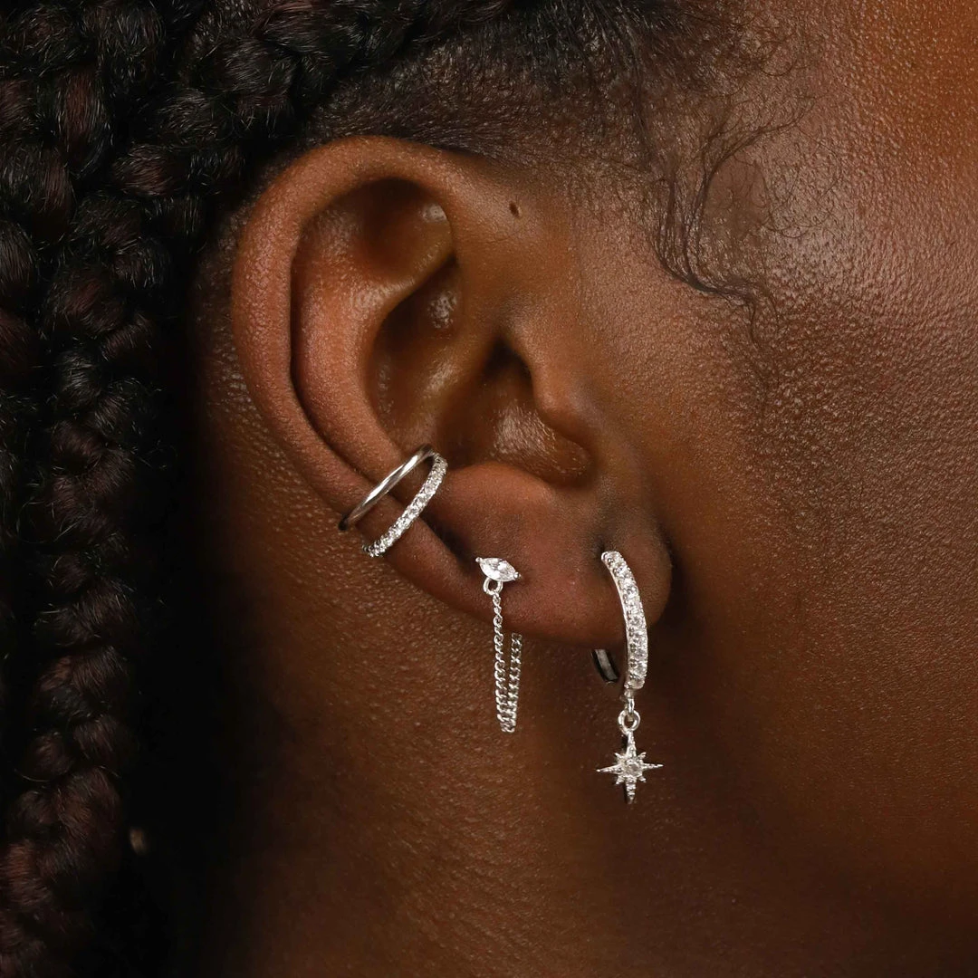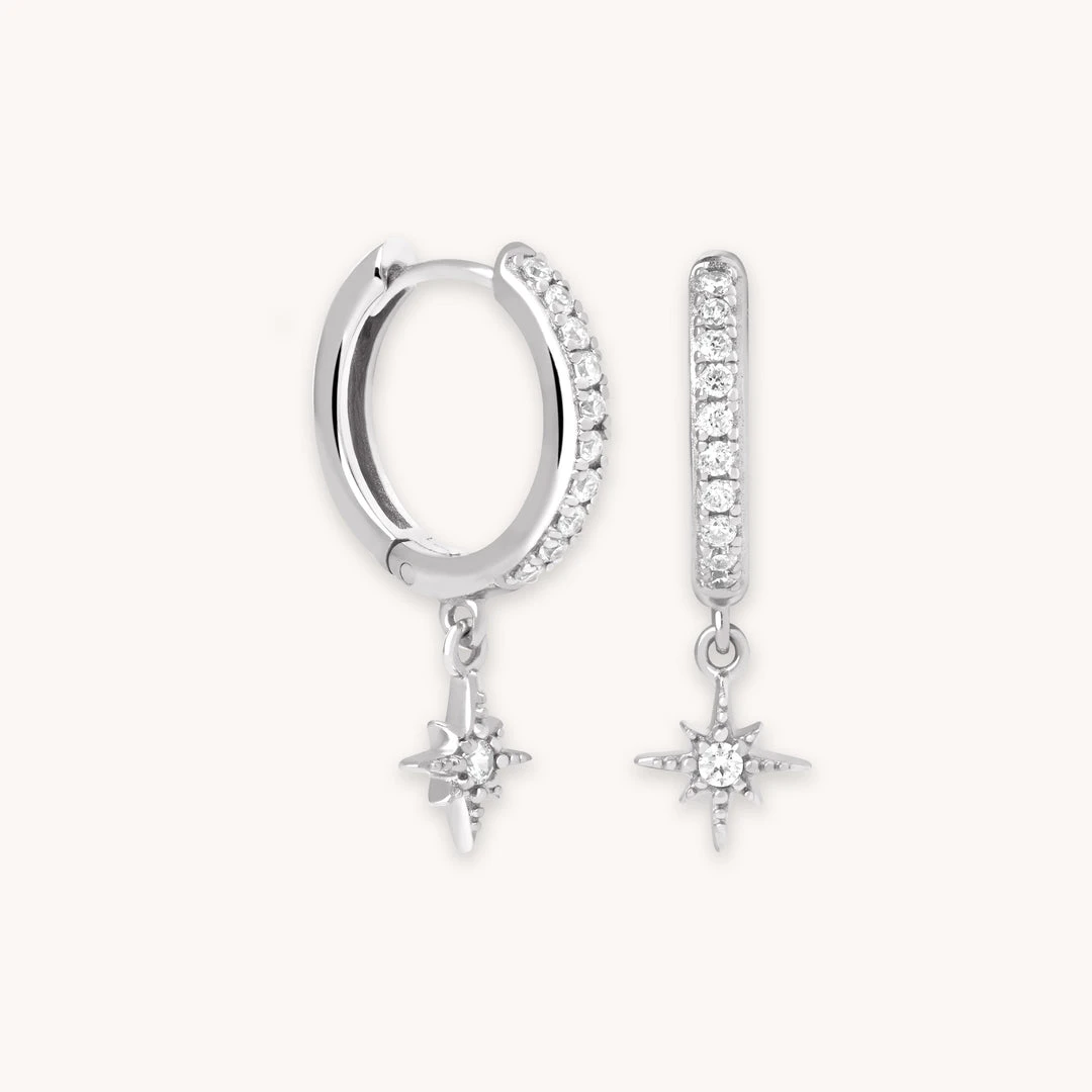 Your new lucky stars ~ the Crystal Star Hoops in Silver never stop shining. Paved all over in sparkling cubic zirconias, these drop a dainty star charm with a crystal in the centre. For the mystics in your life, these make the perfect gift (you want to buy a pair for yourself, don’t you?). Wear them everyday, or add ear cuffs and huggies for a nighttime look.