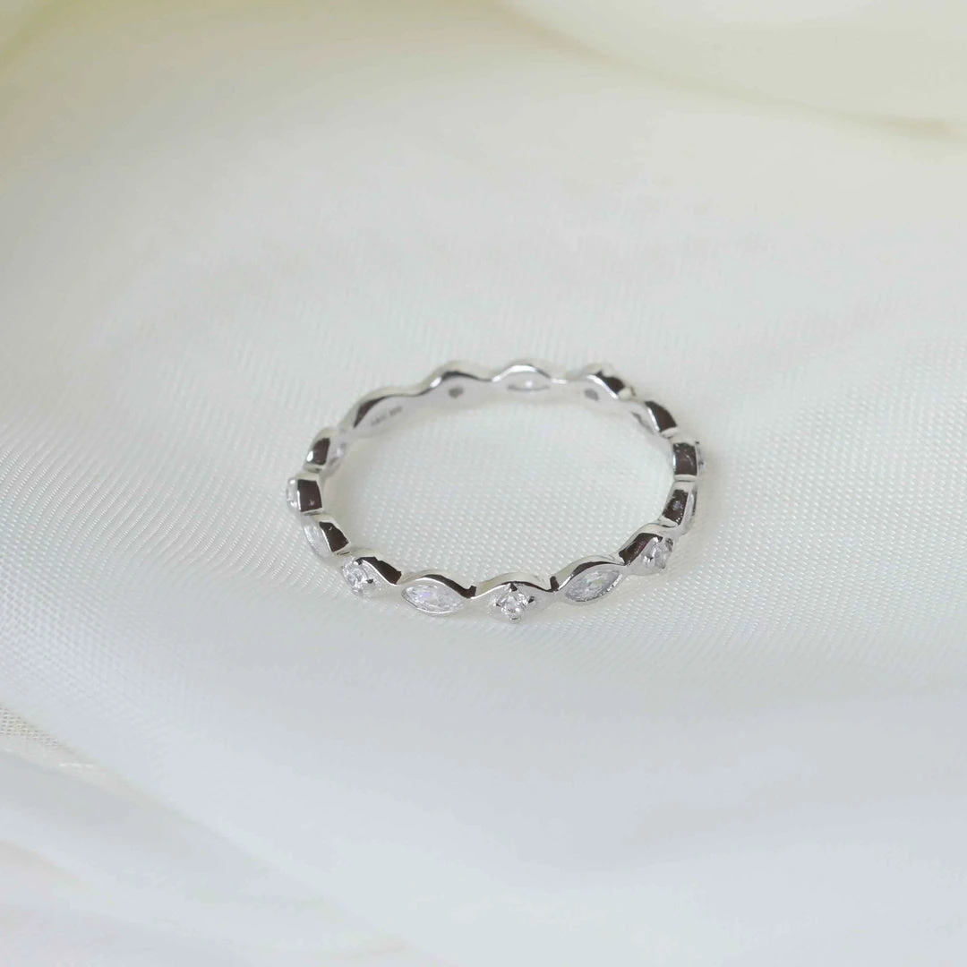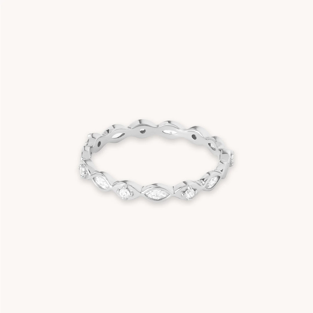 Achieve the ring stack of your dreams ~ add the Navette Crystal Band Ring in Silver to your collection for an all-out sparkling moment. With navette crystals all around, this is for when you want to let your hands do the talking. It’s on a dainty setting, so it’s easily stacked with other A&M ring styles.