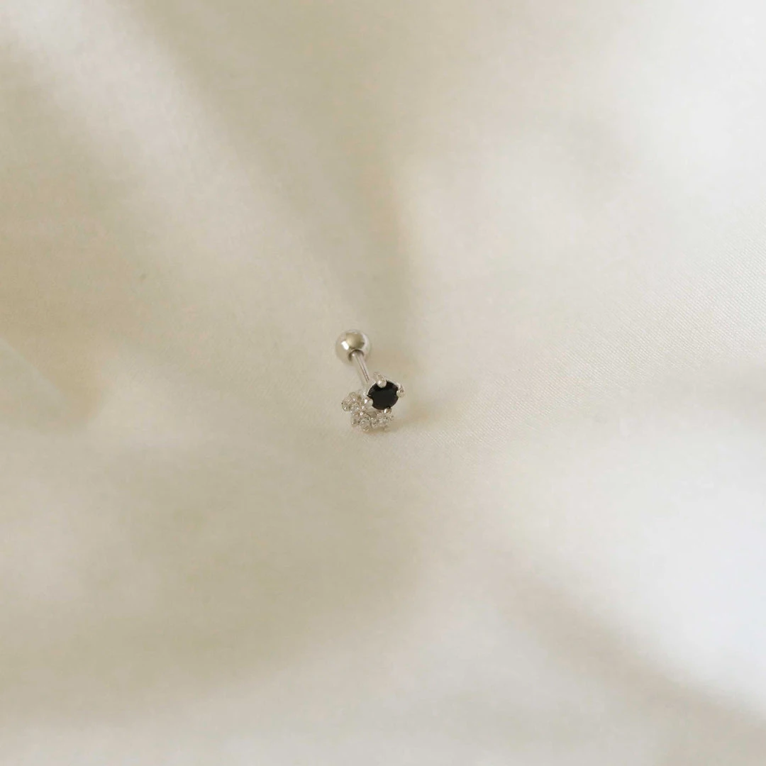 You could add a pop of colour to your stack, or you could add the Black Crystal Cluster Barbell in Silver. With a striking black crystal and three clear cubic zirconias underneath, this is an eye-catching addition to your stack. Wear this in your lobes, tragus, helix, forward helix or conch piercings.