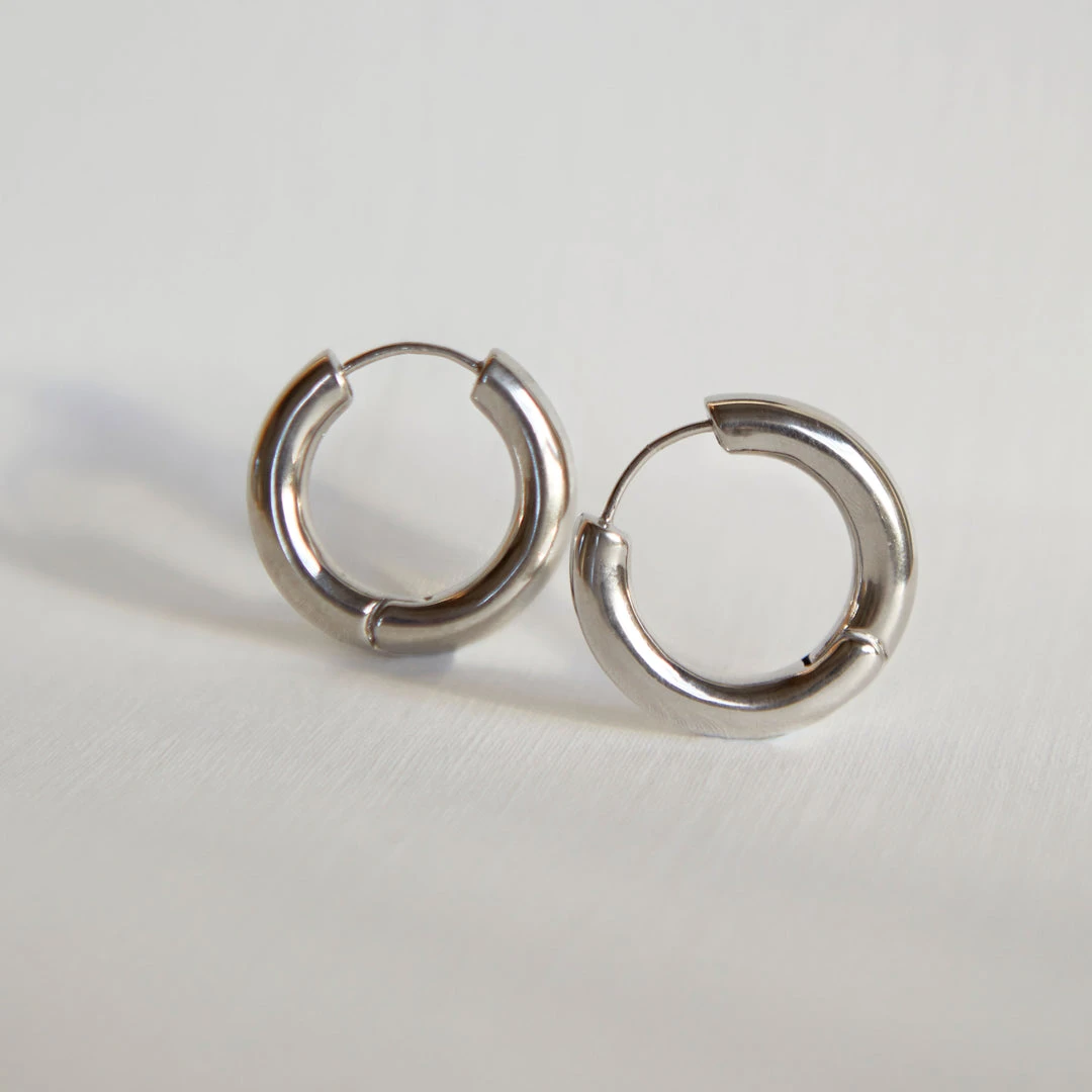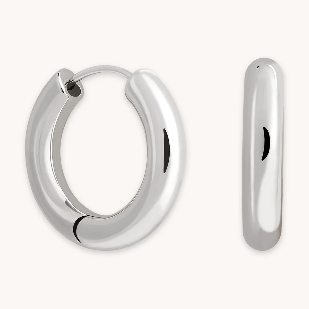 Introducing your new BFF, the Chunky Hoops in Silver. These hoops are small but mighty. Best paired with huggies, cartilage hoops and a white tee for maximum cool, minimum effort.Â