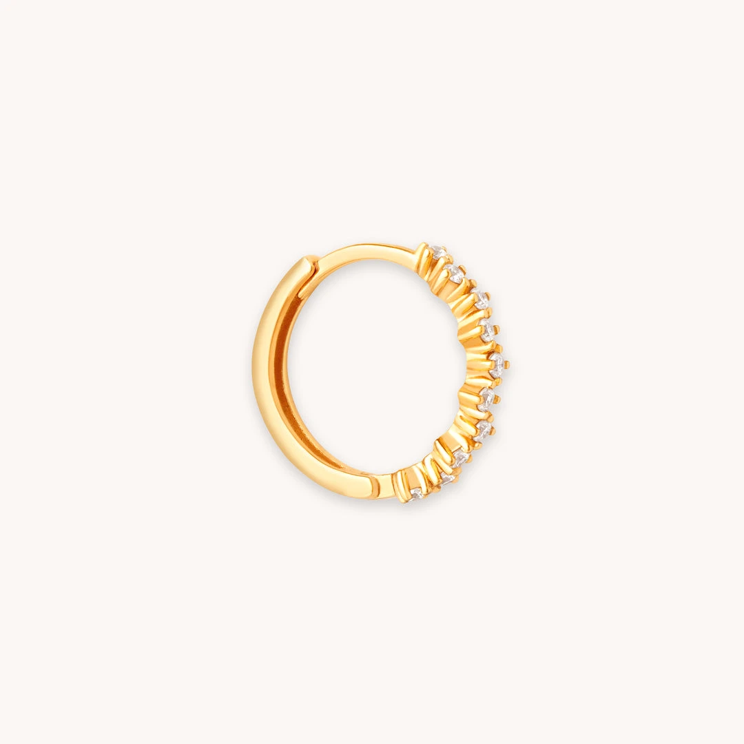 Dainty clusters of crystals to add the sparkle you deserve ~ meet the Cluster Hoop 11.5mm in Gold. Fitting perfectly in your lobe or conch piercings, this single hoop means you can curate your stack and get the asymmetrical look.