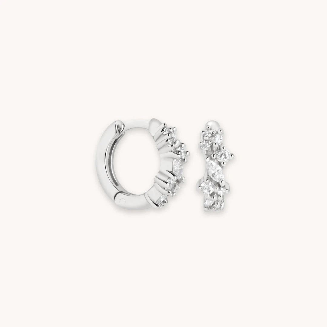 A sparkly accent to add to your stack ~ the Crystal Cluster Huggies in Silver are the perfect way to elevate your jewellery rotation. In our best-selling huggie profile, these feature a cluster of cubic zirconia in different shapes & sizes for an eye-catching finish. These will fit into your existing ear stack with ease. Wear them alone, or stack them with your favourite hoops.