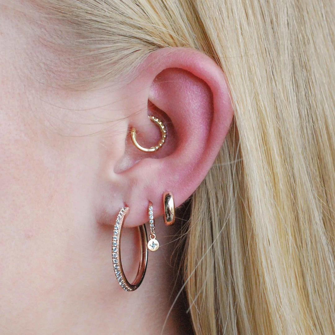 We love a huggie here at A&M, and the Crystal Disc Huggies in Rose Gold are no exception. Dainty & paved with cubic zirconia stones, these huggies feature a cute little disc drop for an eye-catching look – and, they’re designed to be stacked with your other fave earrings for a curated vibe.