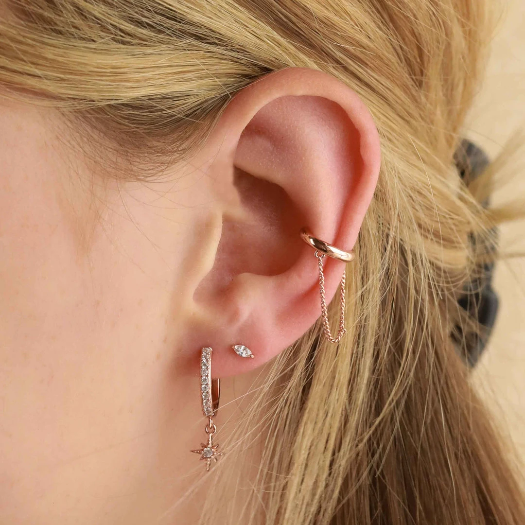 Your new lucky stars ~ the Crystal Star Hoops in Rose Gold never stop shining. Paved all over in sparkling cubic zirconias, these drop a dainty star charm with a crystal in the centre. For the mystics in your life, these make the perfect gift (you want to buy a pair for yourself, don’t you?). Wear them everyday, or add ear cuffs and huggies for a nighttime look.