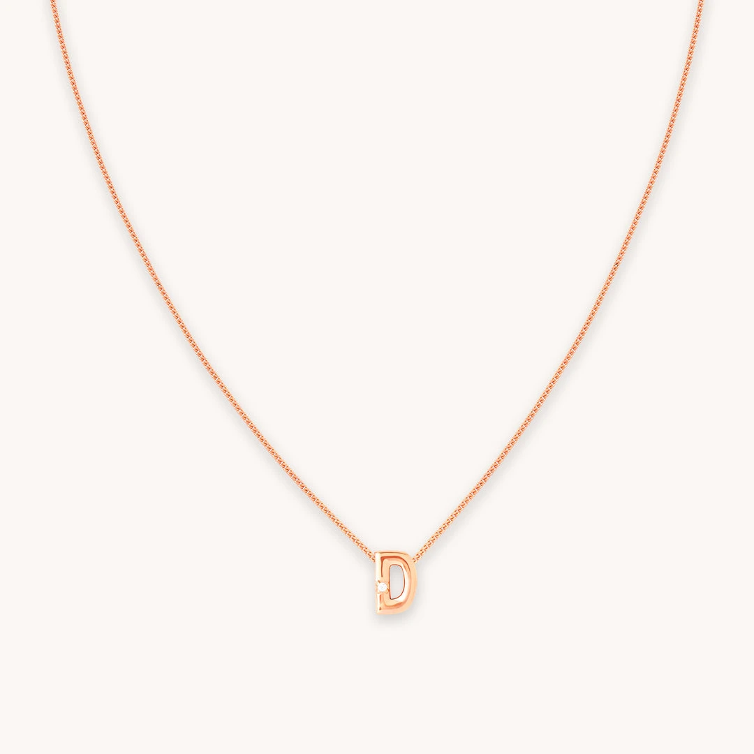 Astrid & Miyu D Initial Pendant Necklace In Rose Gold With D Pendant Necklaces