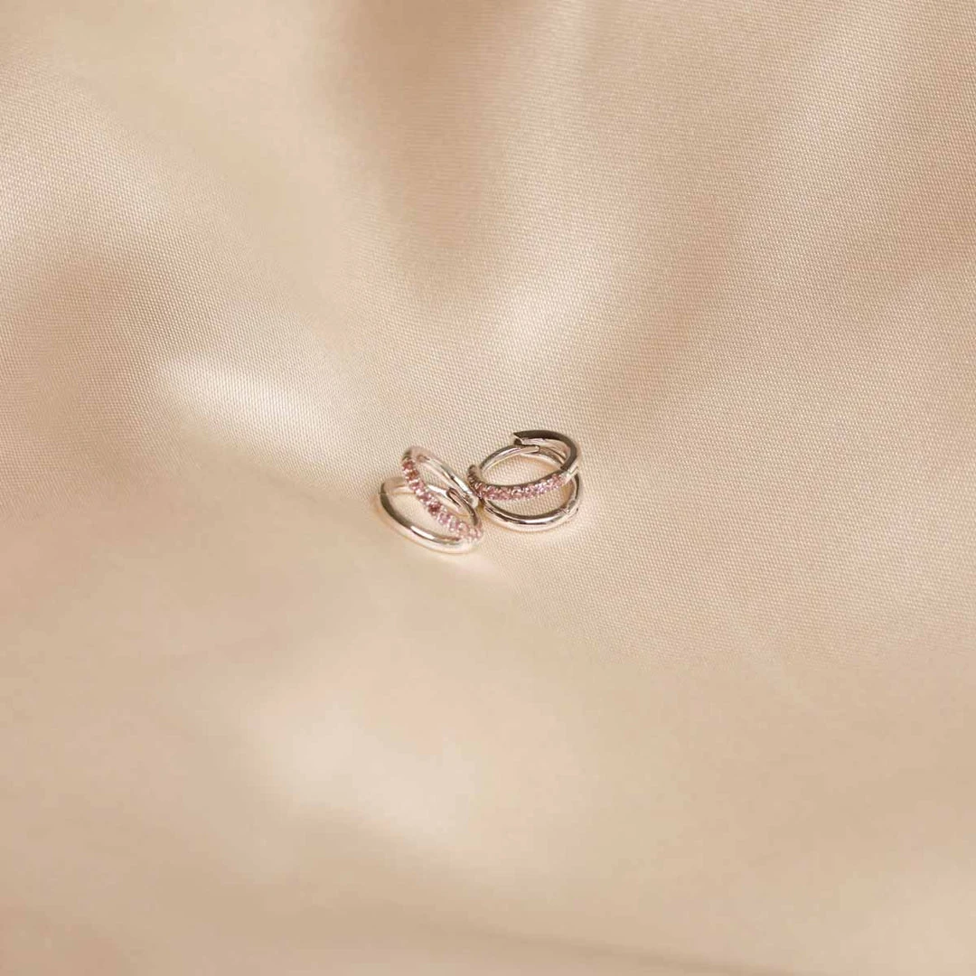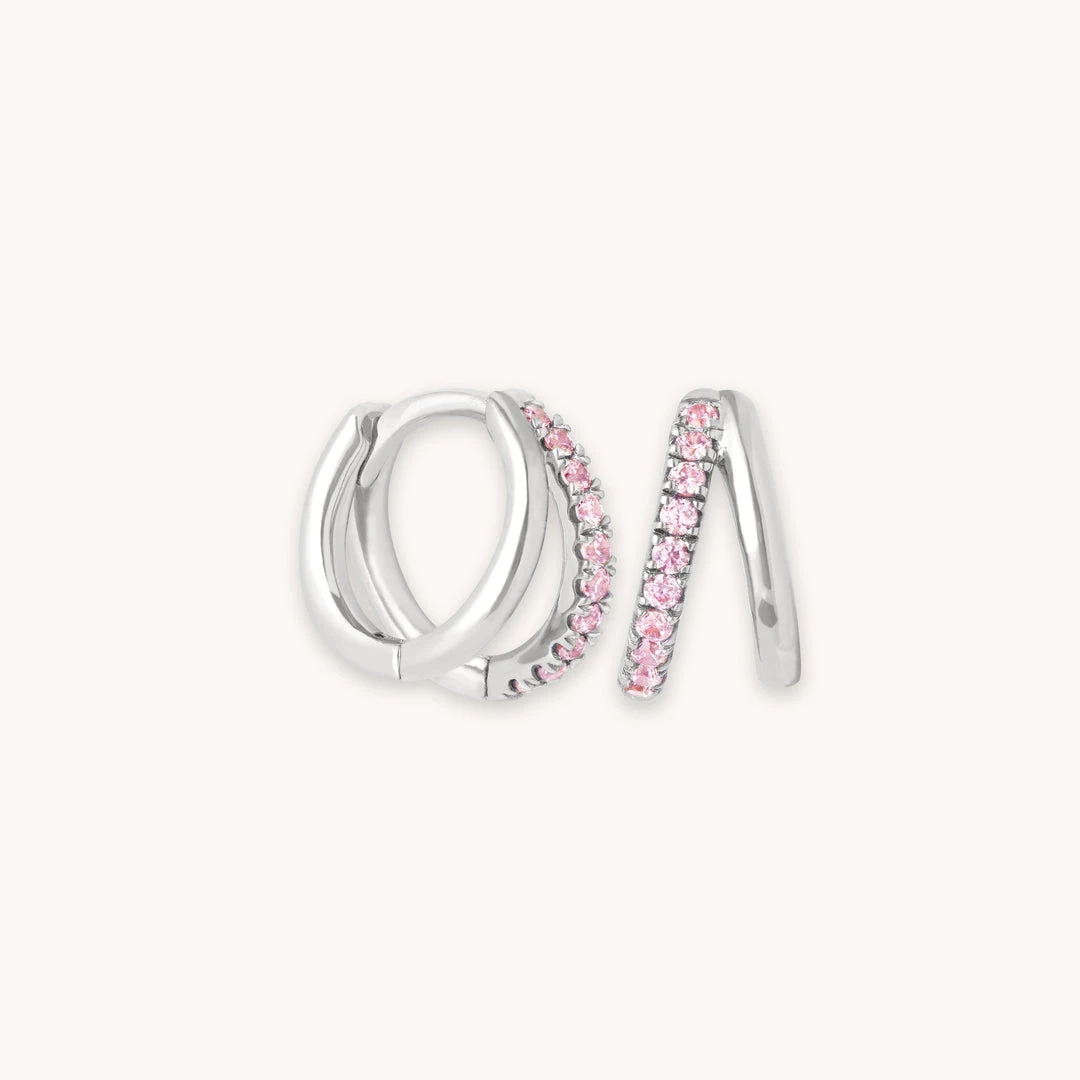 Your go-to huggies have had a fresh update ~ meet the Duo Pink Huggies in Silver. With the look of two hoops in one, these feature one plain and one crystal jewelled hoop with pink cubic zirconias. They’re the perfect way to achieve the stacked look with only one piercing. Our duo huggies are also available with emerald or aquamarine cubic zirconias!