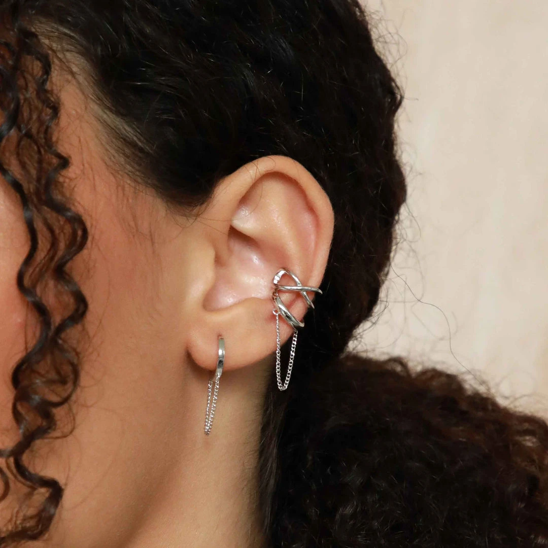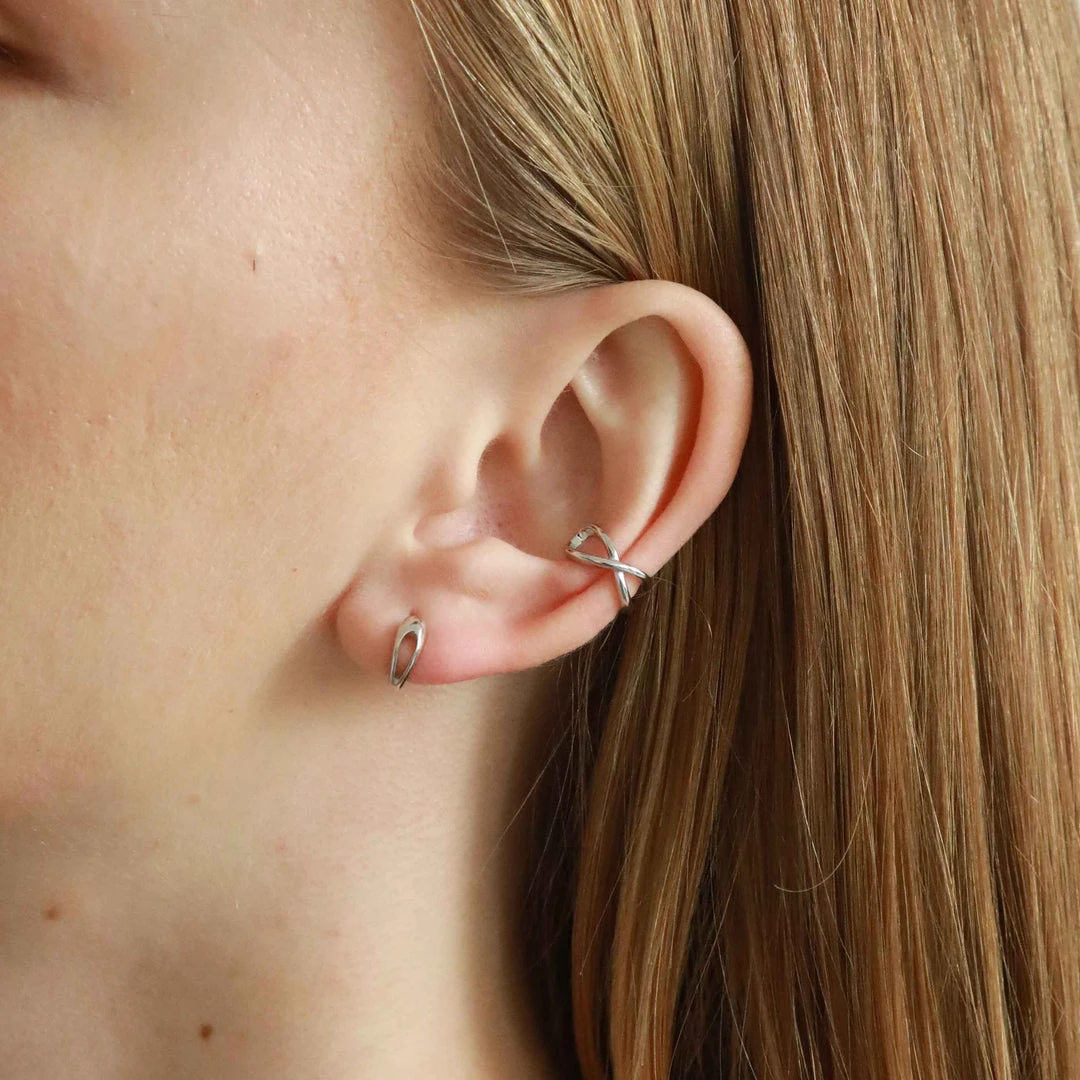 Old metal, new tricks ~ the Infinite Ear Cuff in Silver is made from recycled sterling silver, making it an ear stack addition that’s kinder to the planet. It’s in a crossover infinity design, symbolising the circular economy of this collection. Wear this with any ear stack combo, or use it to elevate your look from day to night.