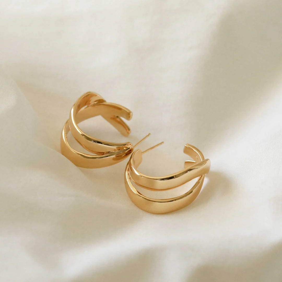 Everything is better with a pair of hoops, and even better when they’re the Molten Duo Large Hoops in Gold. They’re the statement hoops your collection has been waiting for (and more). With the appearance of two hoops crossed over, these are an easy way to achieve the stacked up look. Wear them alone, or with ear cuffs & huggies.