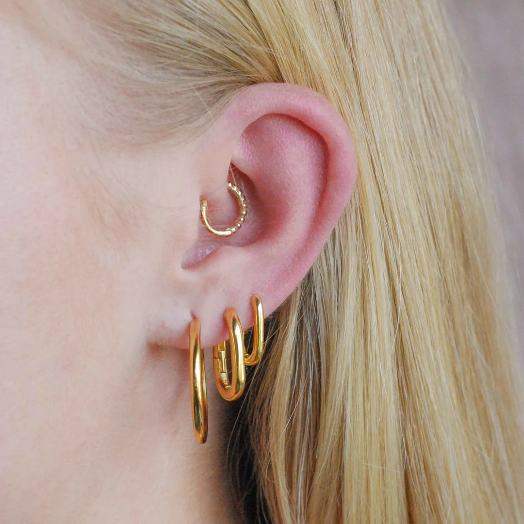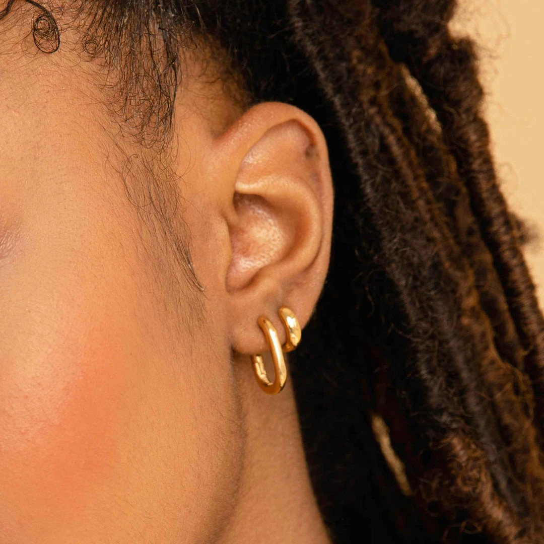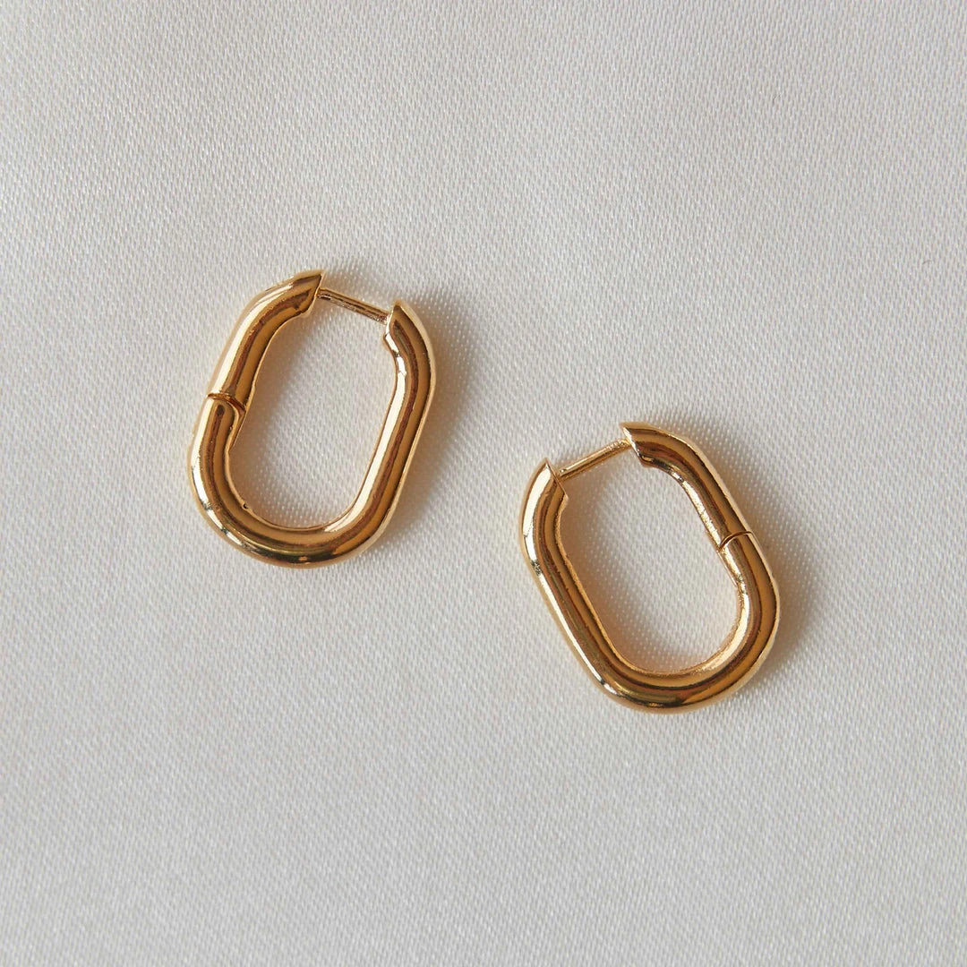 Angular and chic, the Rectangular Hoops in Gold are a modern play on the classic silhouette. Guaranteed to be your new obsession, wear these with chunky chains for a simple and sophisticated look.Â