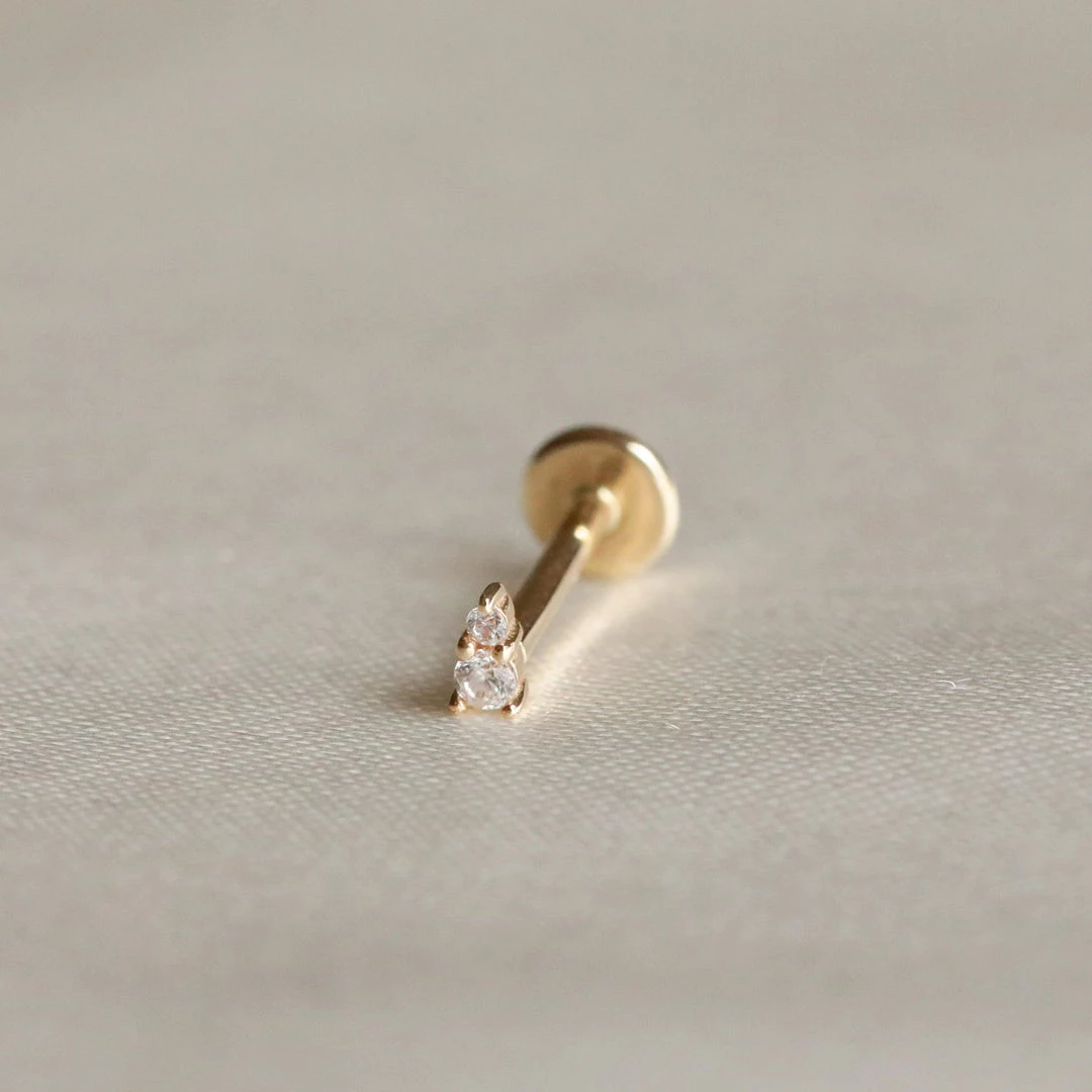 Add a luxe touch to your stack with the Solid Gold Stacked Crystal Piercing Stud ~ wear it in your lobe, tragus, conch or helix piercing. It’s made from 14ct recycled solid gold so you can keep it in your piercings year after year.