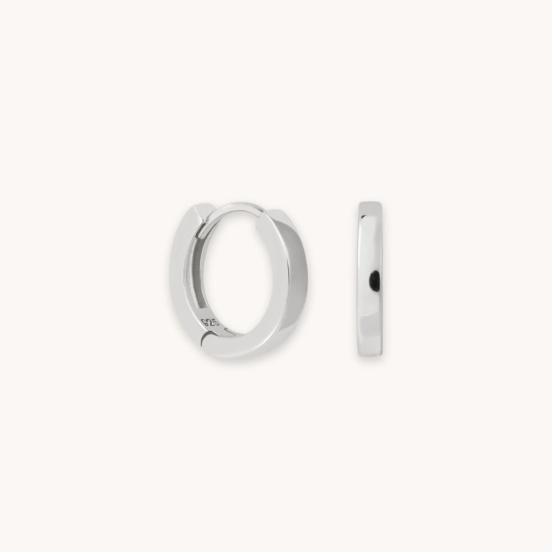 Essentials, essentials, the Square Edge Base Hoops in Silver are your everyday essential hoop earrings. A little bit bigger than a huggie hoop, these are bold enough to be worn alone, or you can style them with other hoops and huggies for a stacked-up look.
