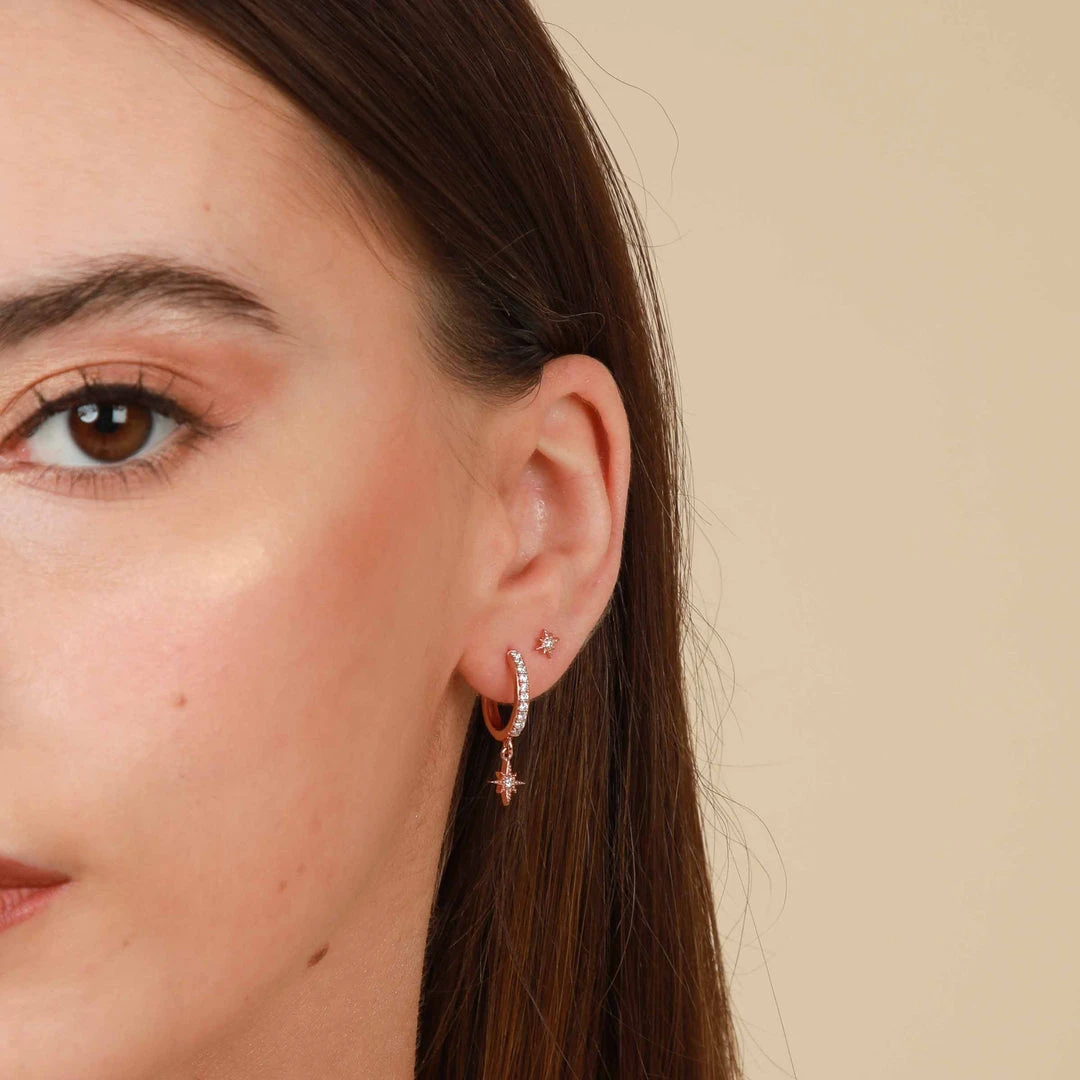 Twilight Star Stud Earrings in Rose Gold – As a pair