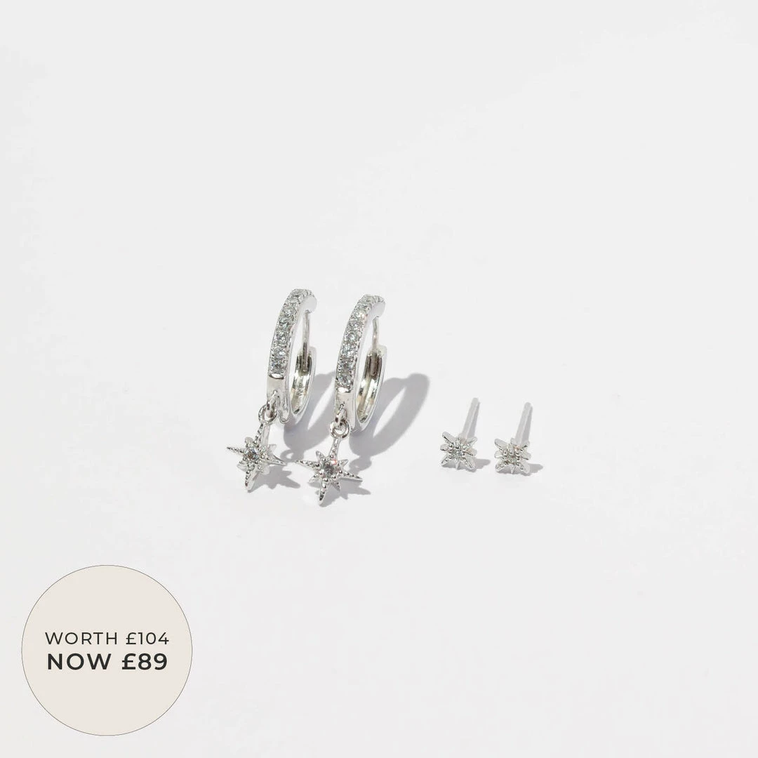 The Twilight Stacking Set adds a mystic touch to your lobes with our best-selling star earrings. With cubic zirconias and a dainty design, these catch the light in the most sparkling way. Wear them individually or stack them both together – the stacking possibilities are endless.