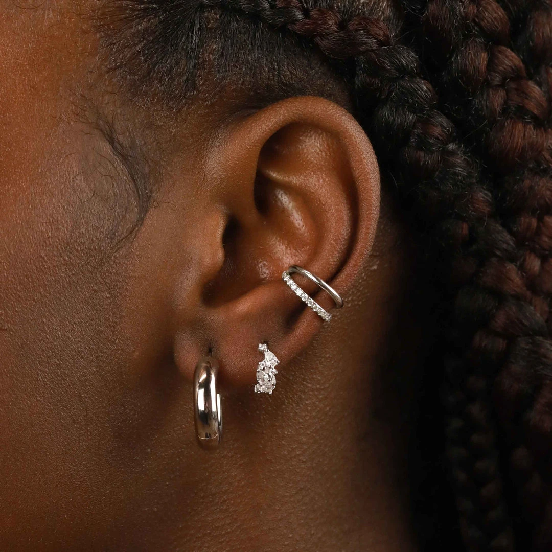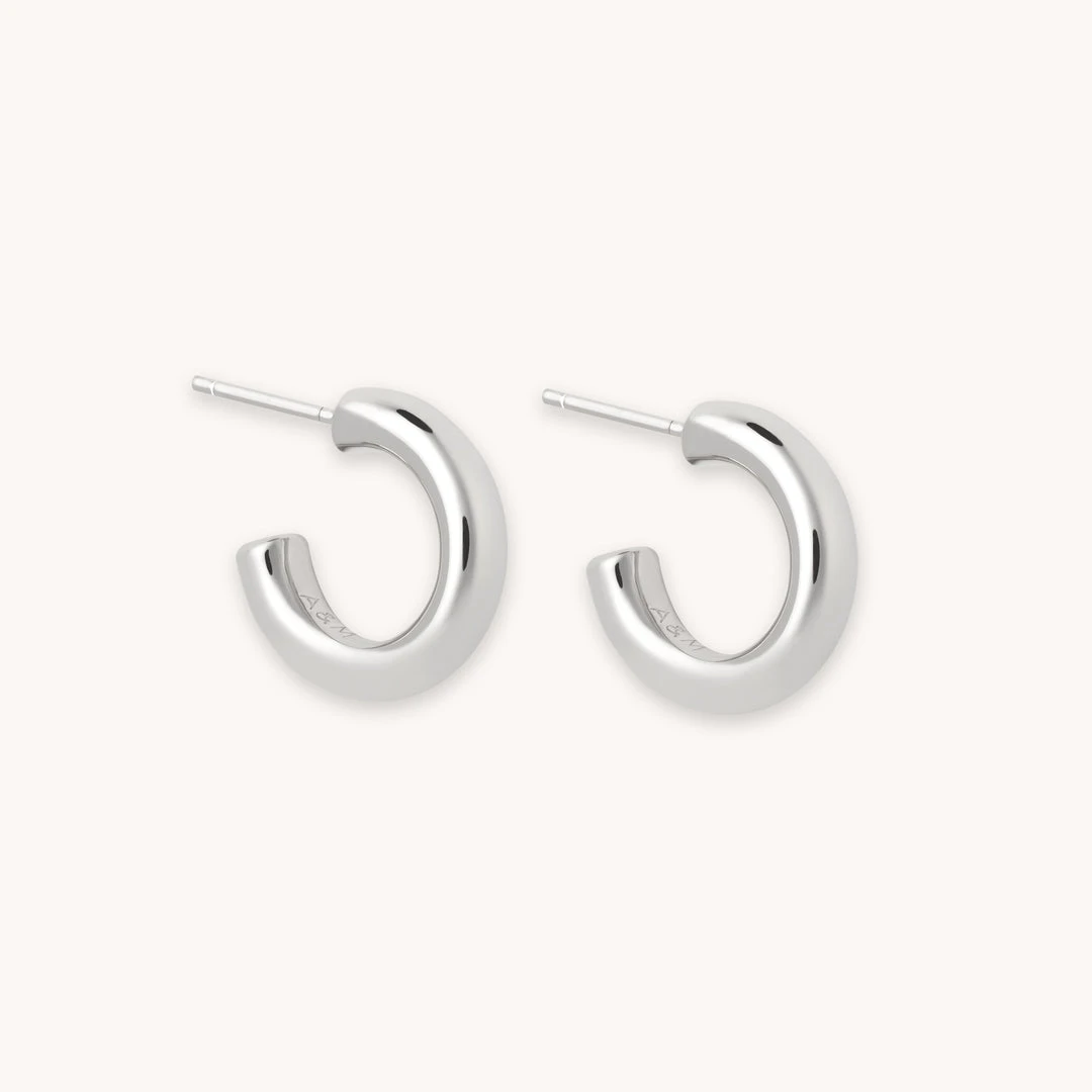 The essentials you won’t be able to live without ~ the Essential Small Hoops in Silver, your new everyday go-to. They’re in a chunky design for a statement look, but are lightweight so you can wear in your lobes all day. The medium size is perfect whatever the occasion, but check out our Large size for a night-out look, or the Small size for an everyday vibe.