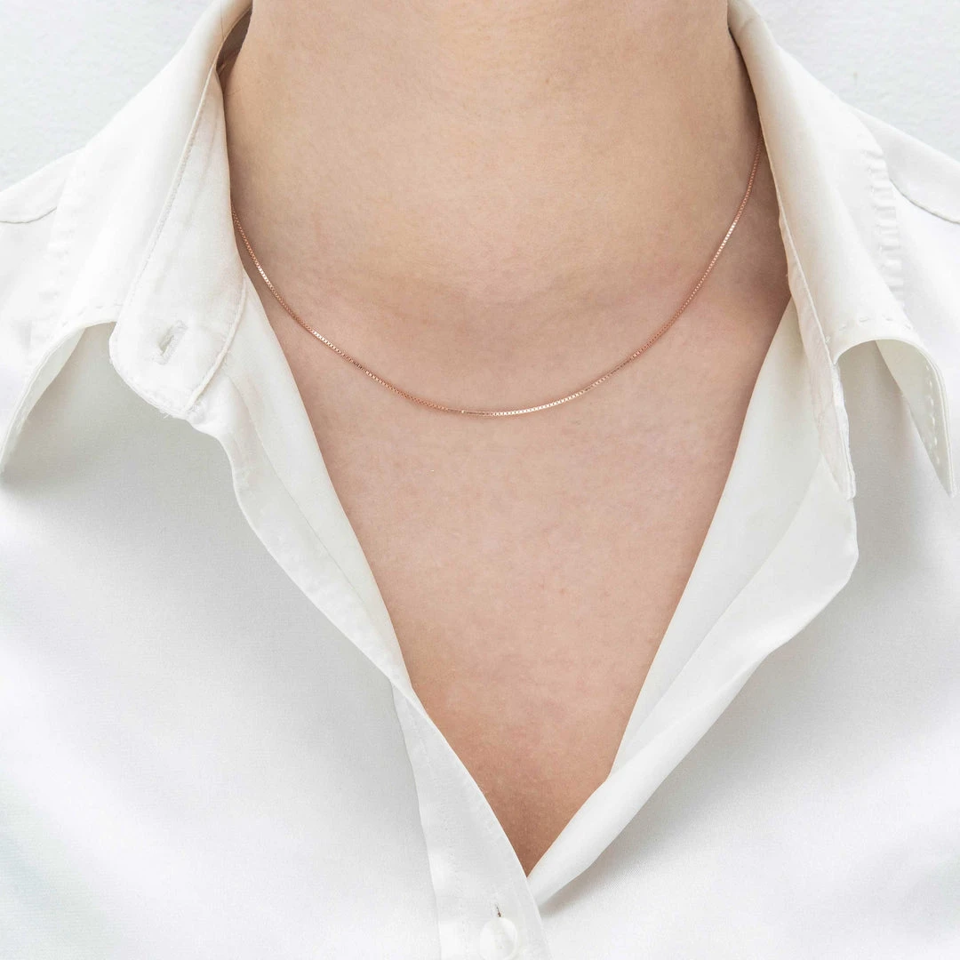 The Fine Box Chain in Rose Gold is an elevated classic. Think minimal effort but maximum impact. Team it with any of our necklace charms for a look that matches your style.