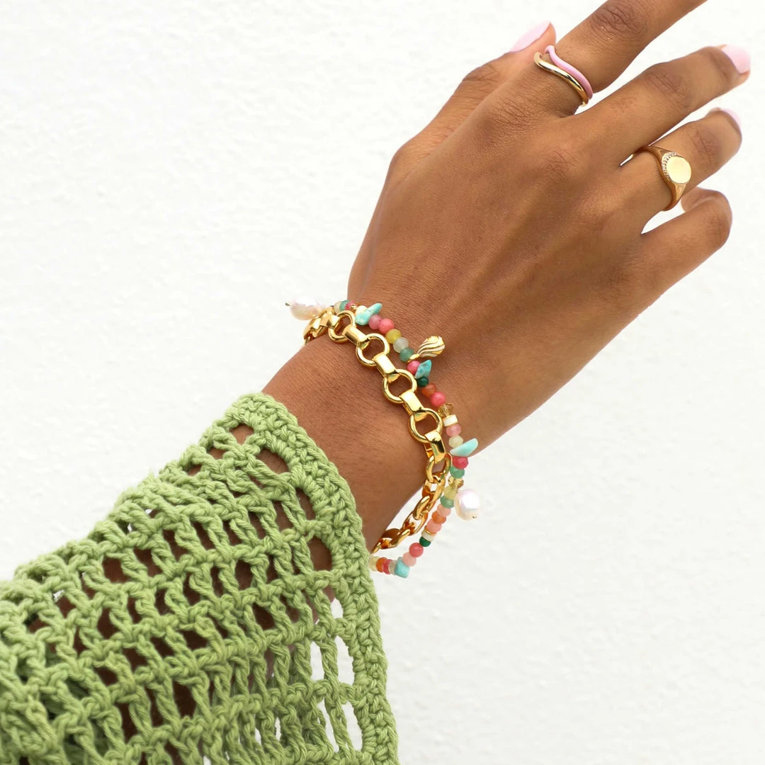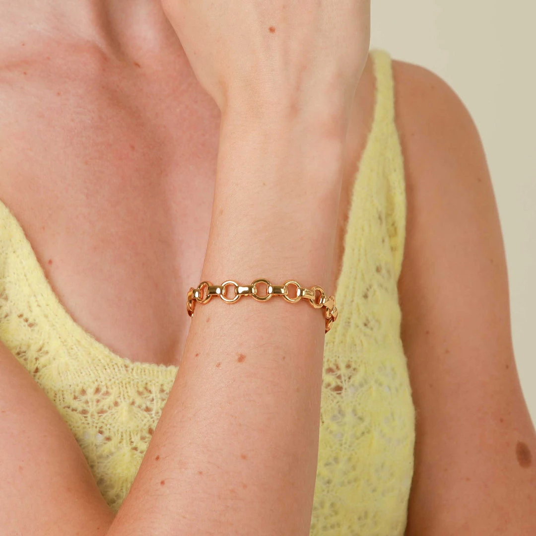 The only bracelet you need this season. The Fused Chain Bracelet in Gold is in a bold linked design to add a statement vibe to your wrist stack. You can wear it alone or stack with other styles for a curated vibe.Â