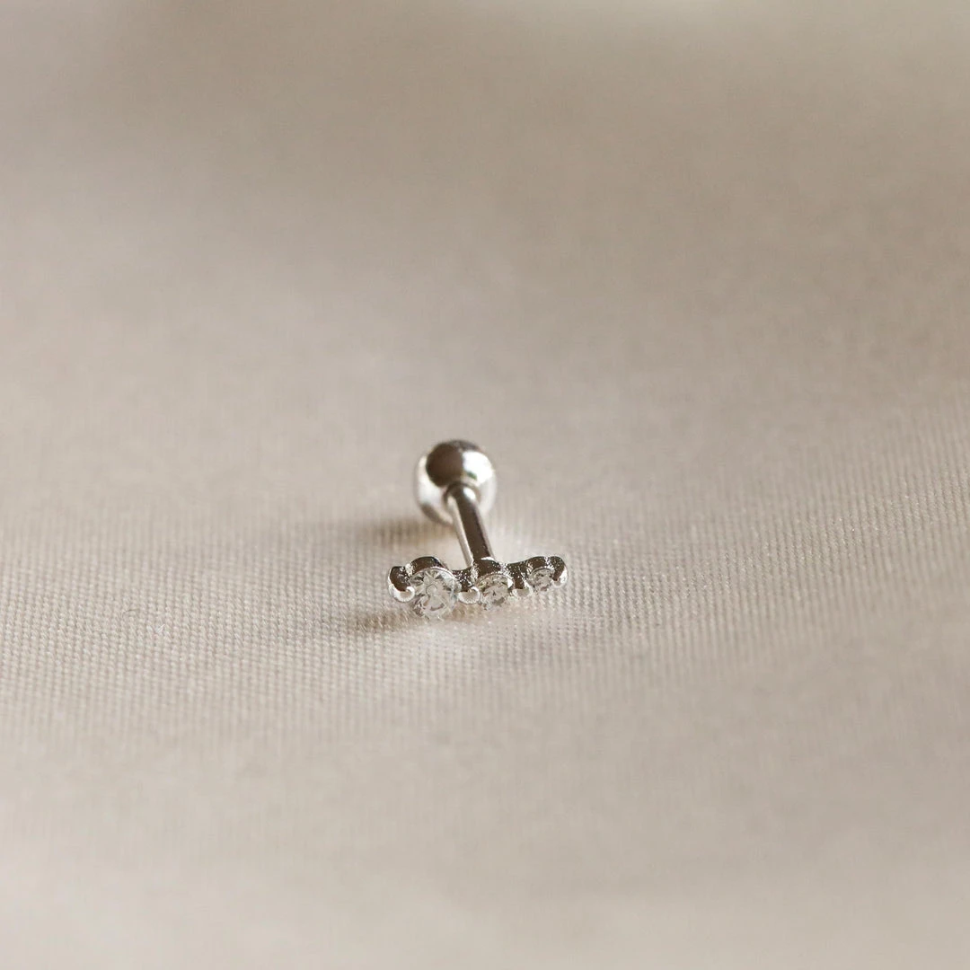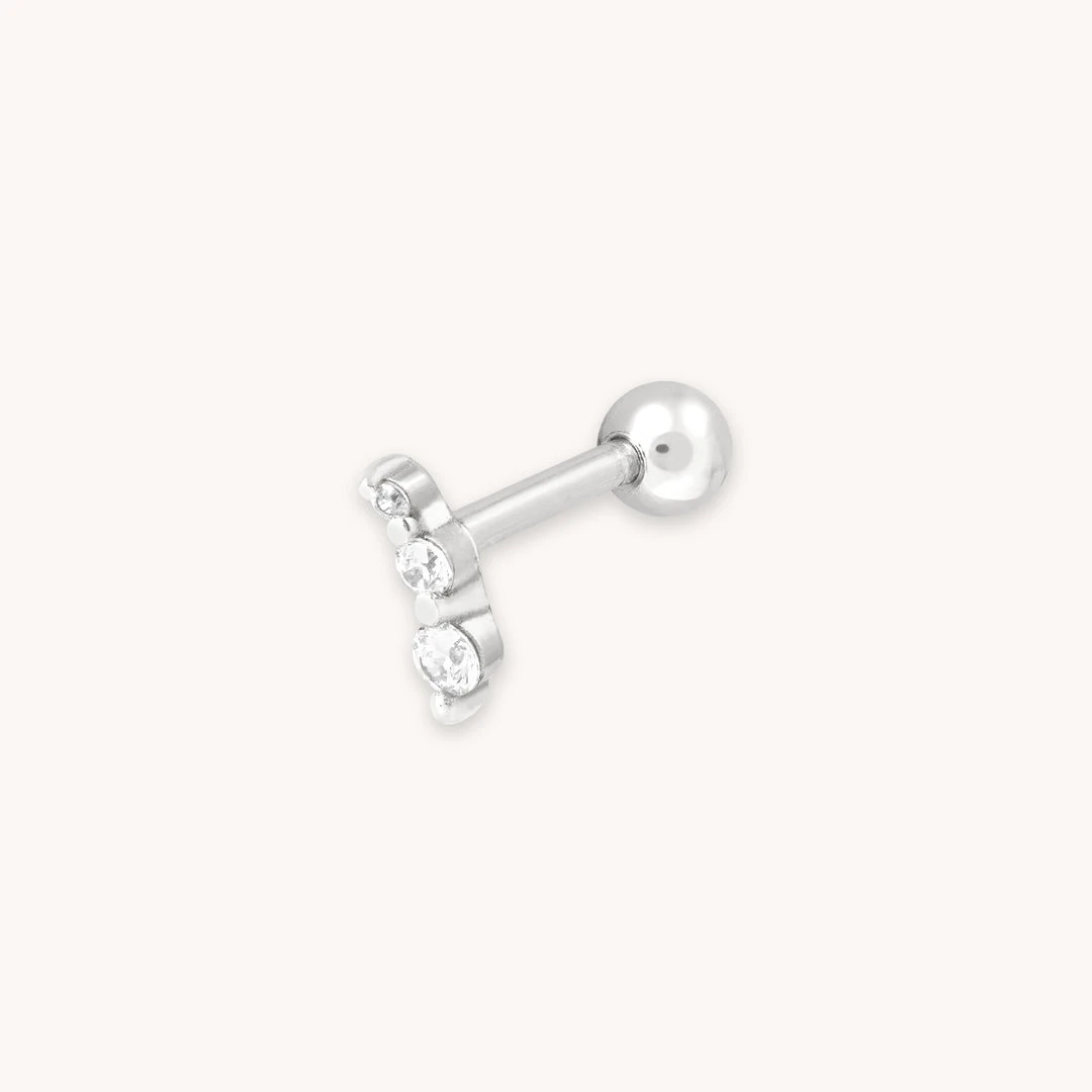 Treat yourself (and your piercings) to the Glimmer Crystal Barbell in Silver, featuring three shining cubic zirconias in a trailing shape. It will fit perfectly in your lobe, helix, conch or outer conch ~ it’ll give your piercings the attention they deserve. Wear it with any of our sparkly huggies or ear cuffs for the ultimate party stack.