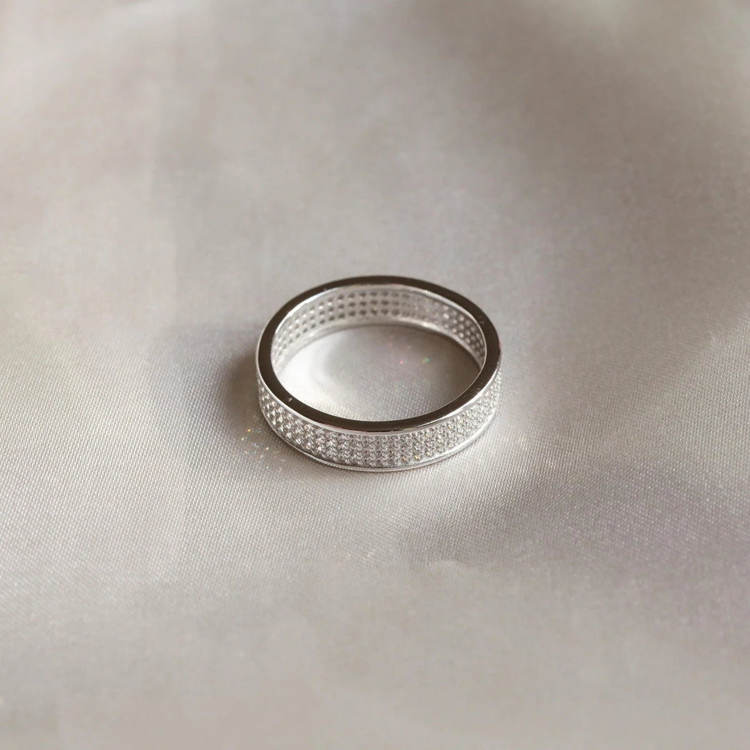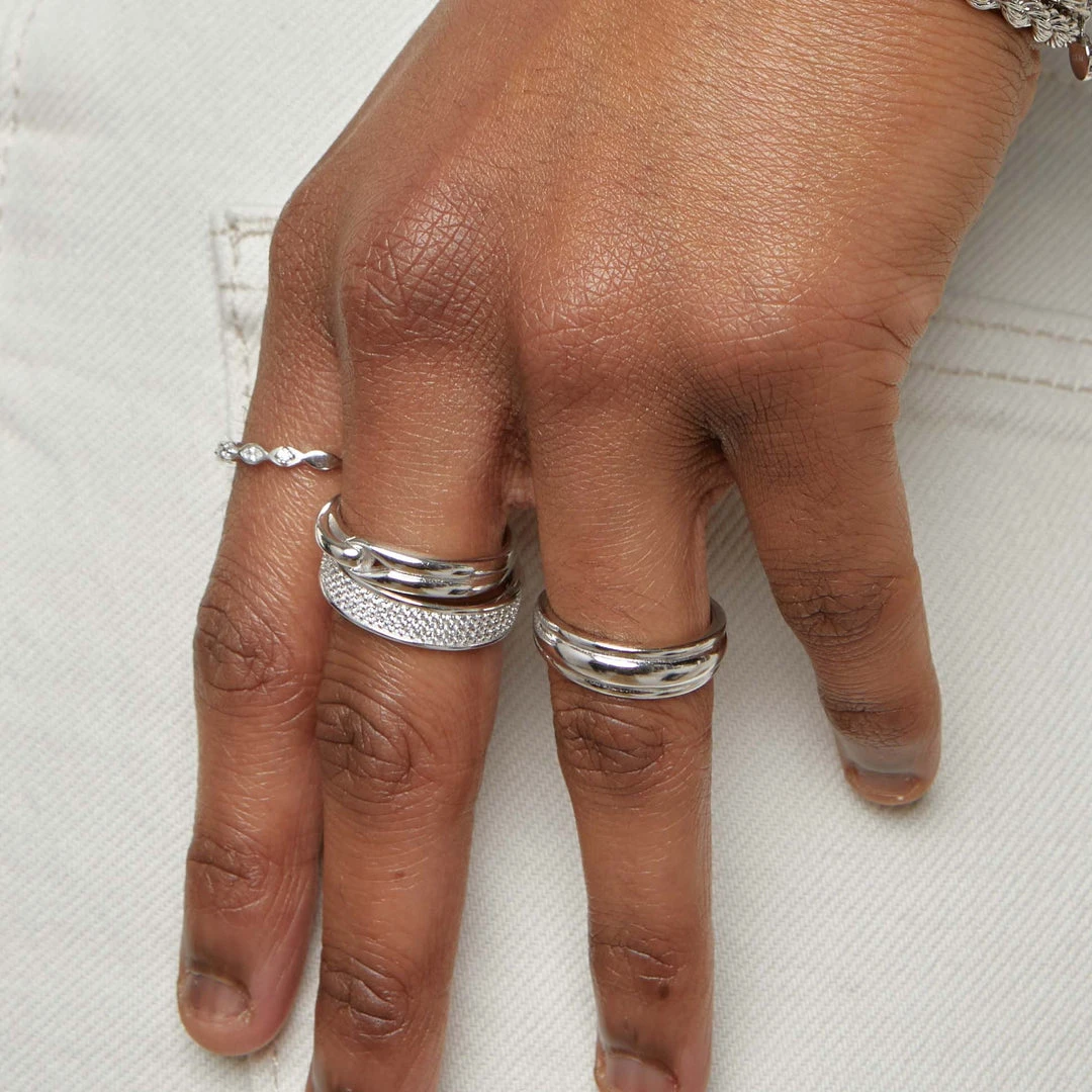 Because everyone loves a touch of opulence. The Glimmer Pave Stacking Ring in Silver features sparkling cubic zirconias for a statement. It’s the perfect way to add a luxe vibe to your look to take you from day to night. Wear it alone, or stack with our other band rings.