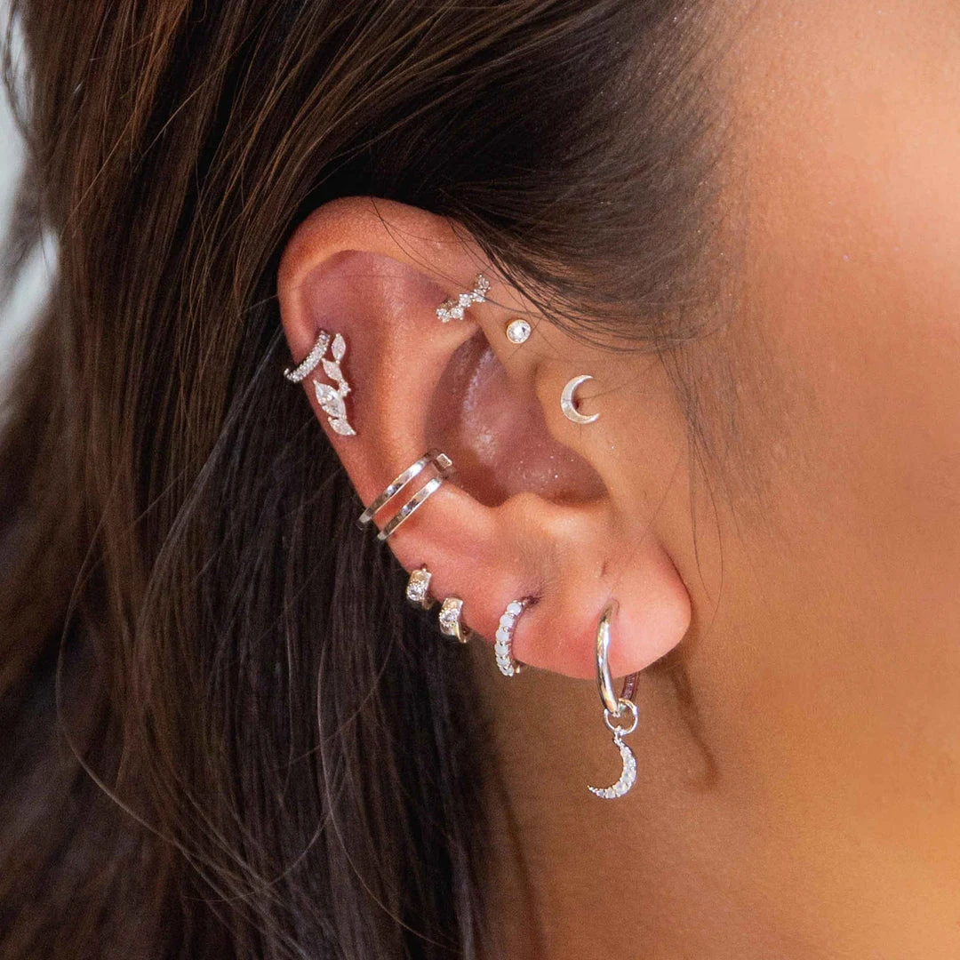 Astrid & Miyu Jewelled Crystal Hoop 6.5mm In Silver Earrings