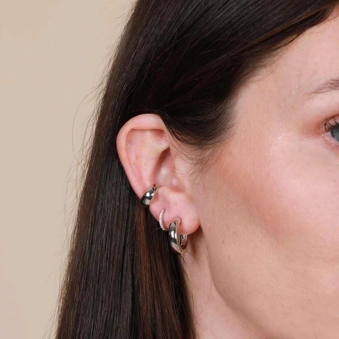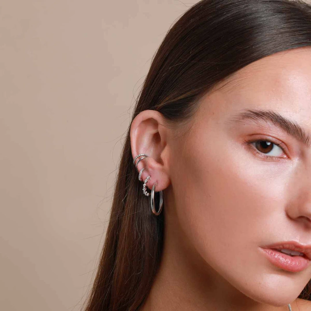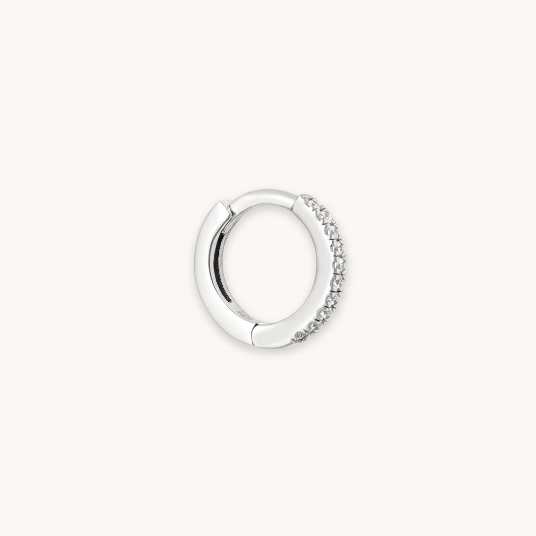 A sparkling addition to your stack ~ the Jewelled Hoop 8mm in Silver is the perfect way to give your piercings the sparkle they deserve. Fitting in lobe, forward helix & helix piercings, this individual hoop means you can customise your stack and achieve the asymmetrical look.