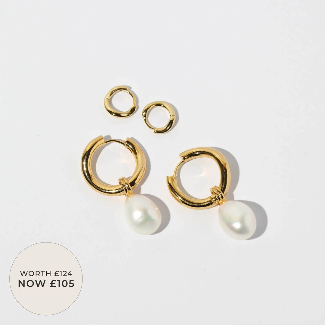 Invest in the Iridescent Stacking Set for timeless pearls to treasure. Including our best-selling pearl earrings, this set also includes staple huggies so you can achieve a curated stack.