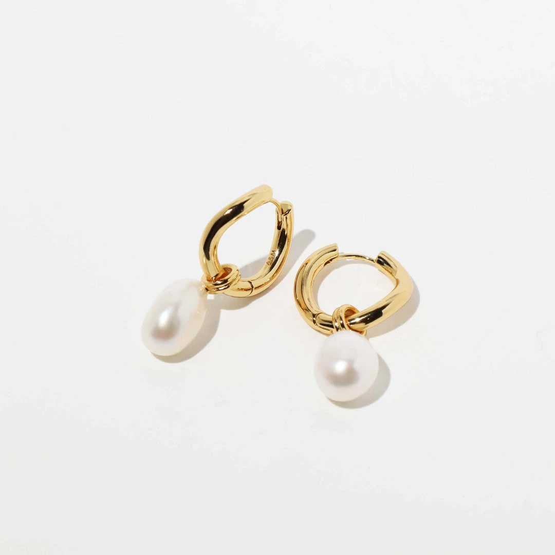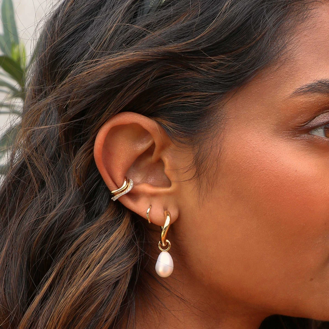 Your everyday hoops, but with a pearly plus one. The Serenity Pearl Charm Hoops in Gold are a summer staple you’ll wear all year round. In a subtle waved shape, they feature a removable freshwater pearl charm in an organic texture and a secure hinge fastening. Wear these alone for a chic look, or stack with huggies and studs for a curated finish.