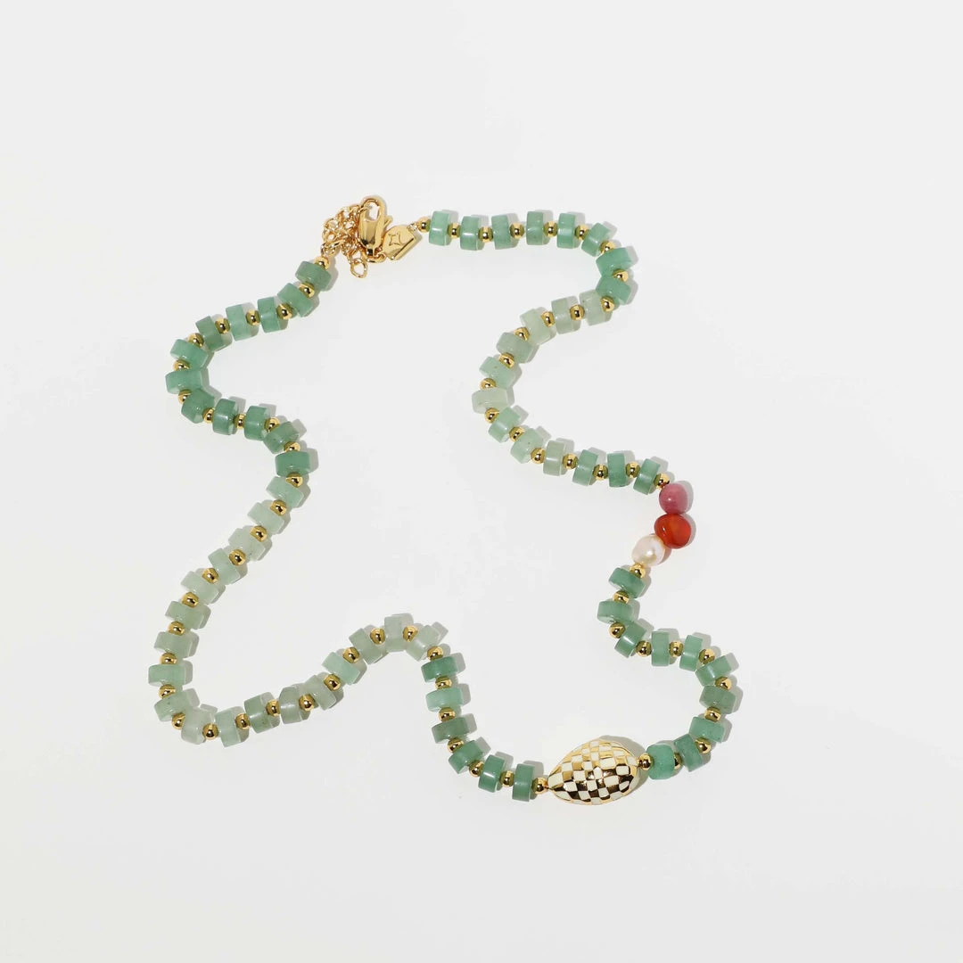 The colour your jewellery box is craving. The Ocean Beaded Necklace in Gold features semi-precious stones in blue & green tones to bring a soothing energy to your stack. Wear to your sunny getaways, staycations and summer events to inject a playfulness to your look.