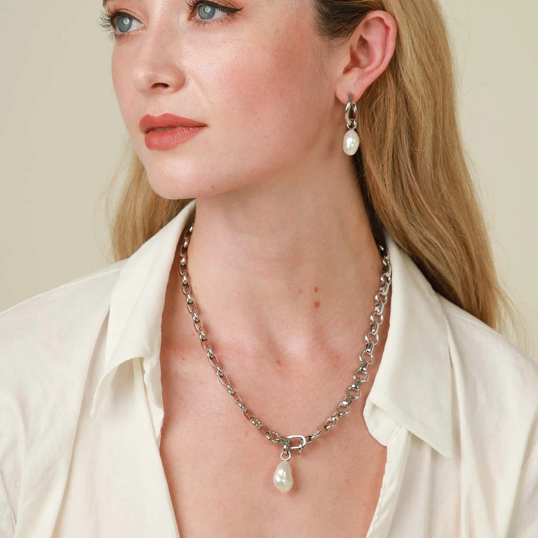 Serenity Pearl Link Chain Necklace in Silver- Single