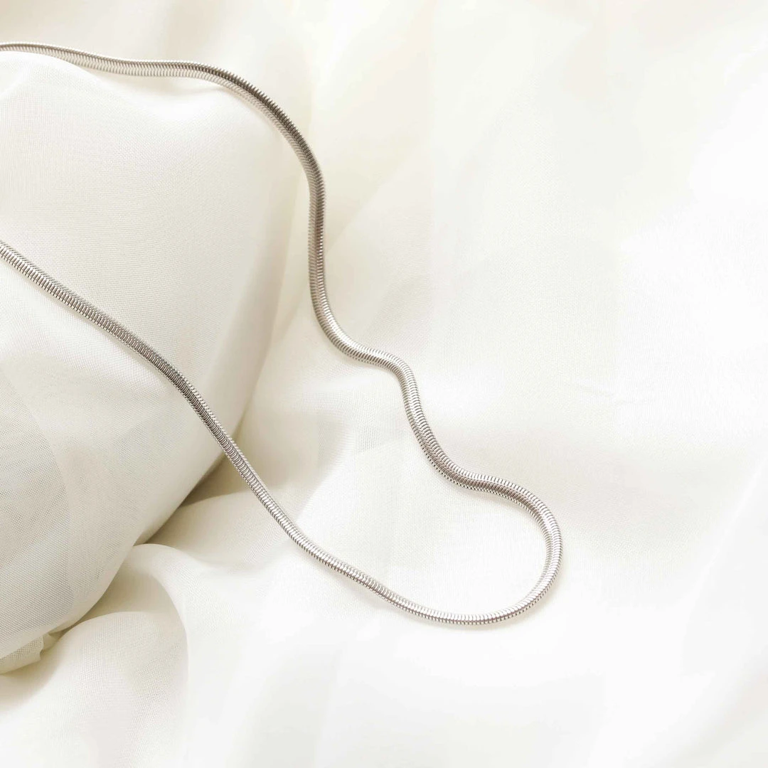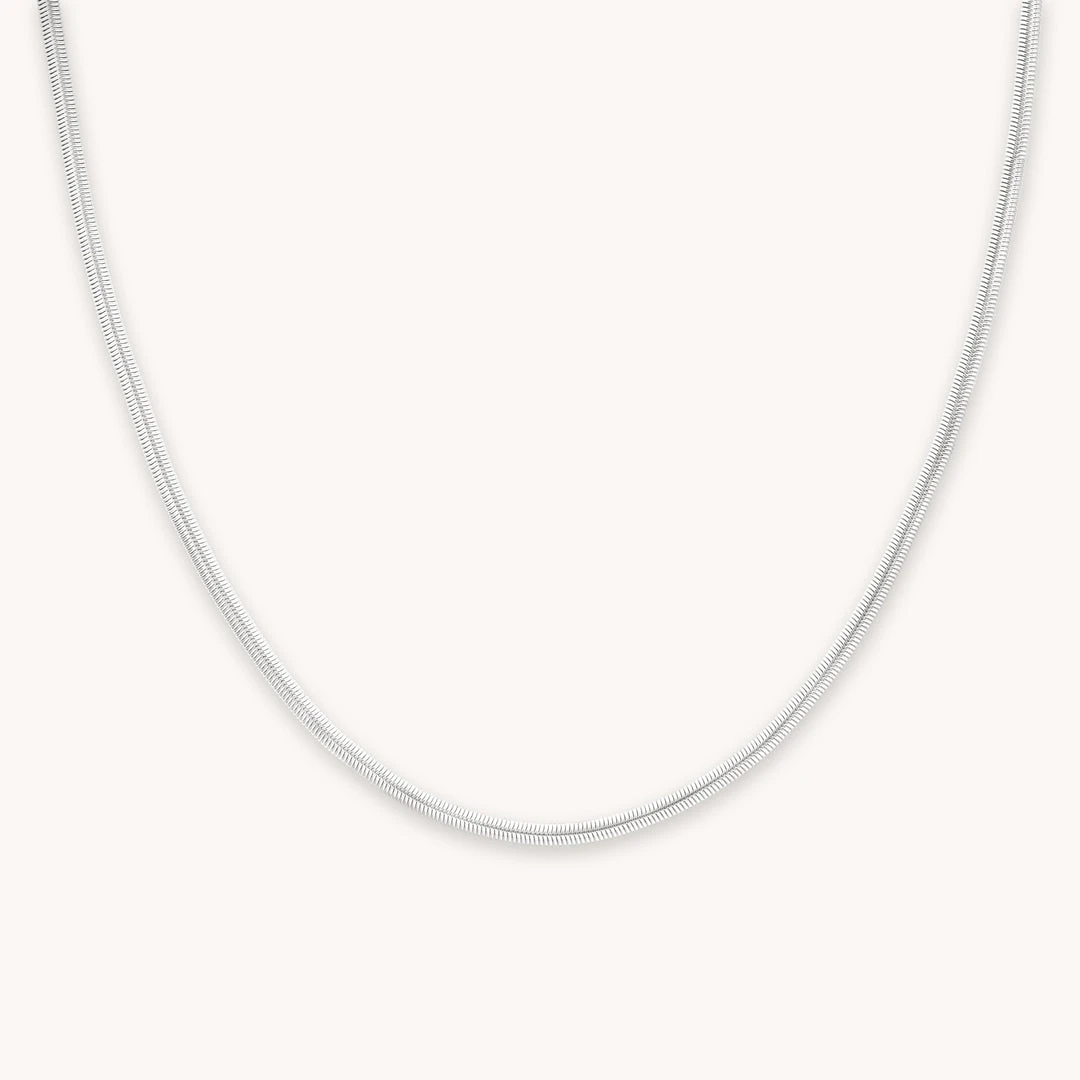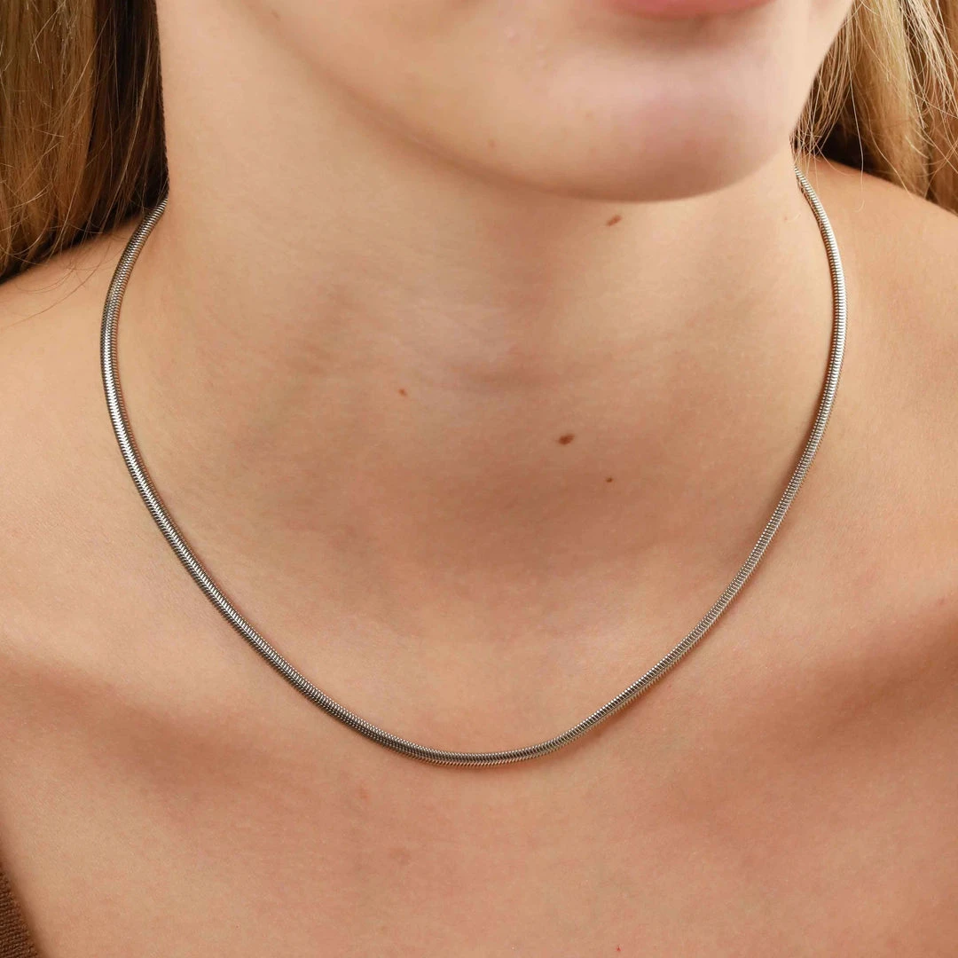 A style that never gets old ~ the Oval Snake Chain Necklace in Silver is a layer to love forever. A must-have in any necklace-layering enthusiast’s collection, a snake chain adds a luxe texture to your stack. This one is in a rounded shape with a ribbed texture, resulting in an eye-catching effect. In a shorter length, this is perfect for layering with other chain necklaces and your favourite pendant necklace.