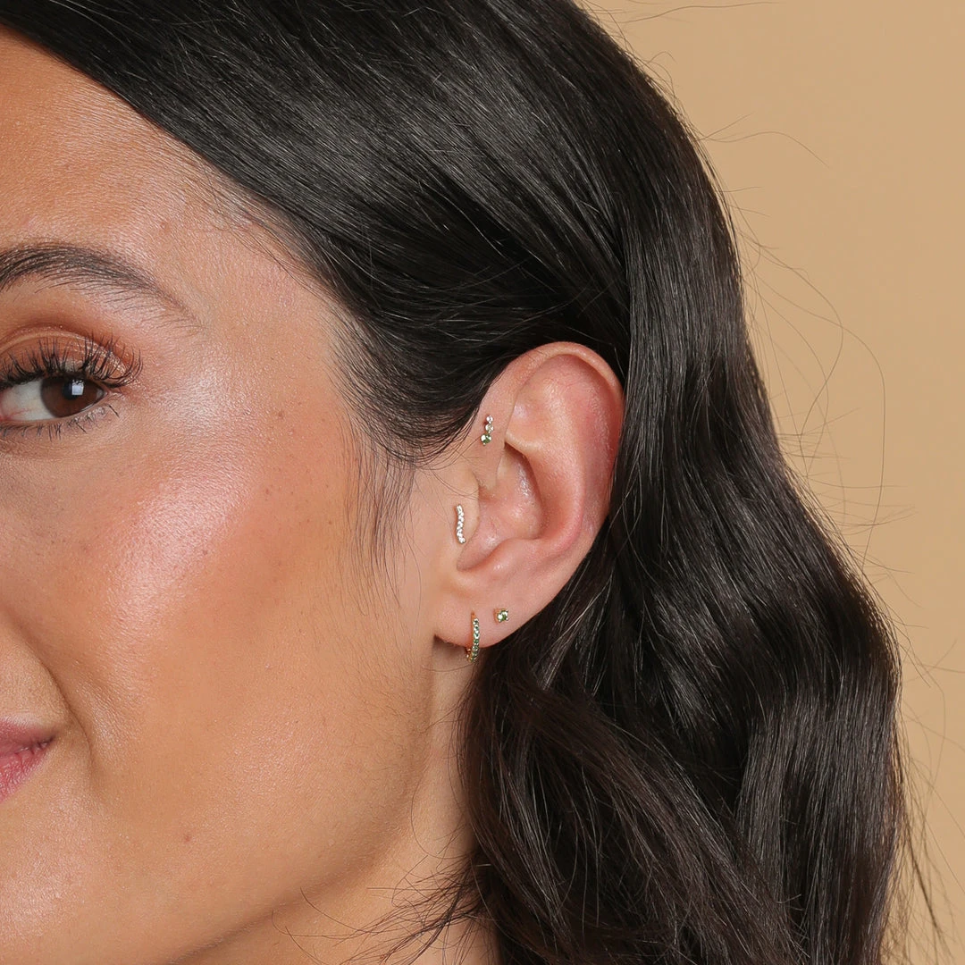 You already know we absolutely love a piercing and our latest solid gold earring range is for all of you wanting to add a little sparkle to your new piercing. Here is a “how to”.