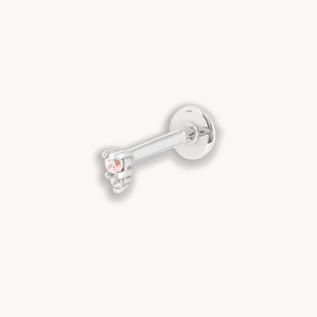 Pretty in pink, the Pink Tourmaline & White Topaz Stacked Piercing Stud is a staple in any ear stack. Featuring pink tourmaline (the stone of hope & joy) and white topaz (the stone of manifestation) this pink labret is the perfect addition to any stack. Wear it in your lobe, tragus, conch or helix piercing – and it’s made from 14k recycled solid white gold so you can keep it in your piercings year after year.