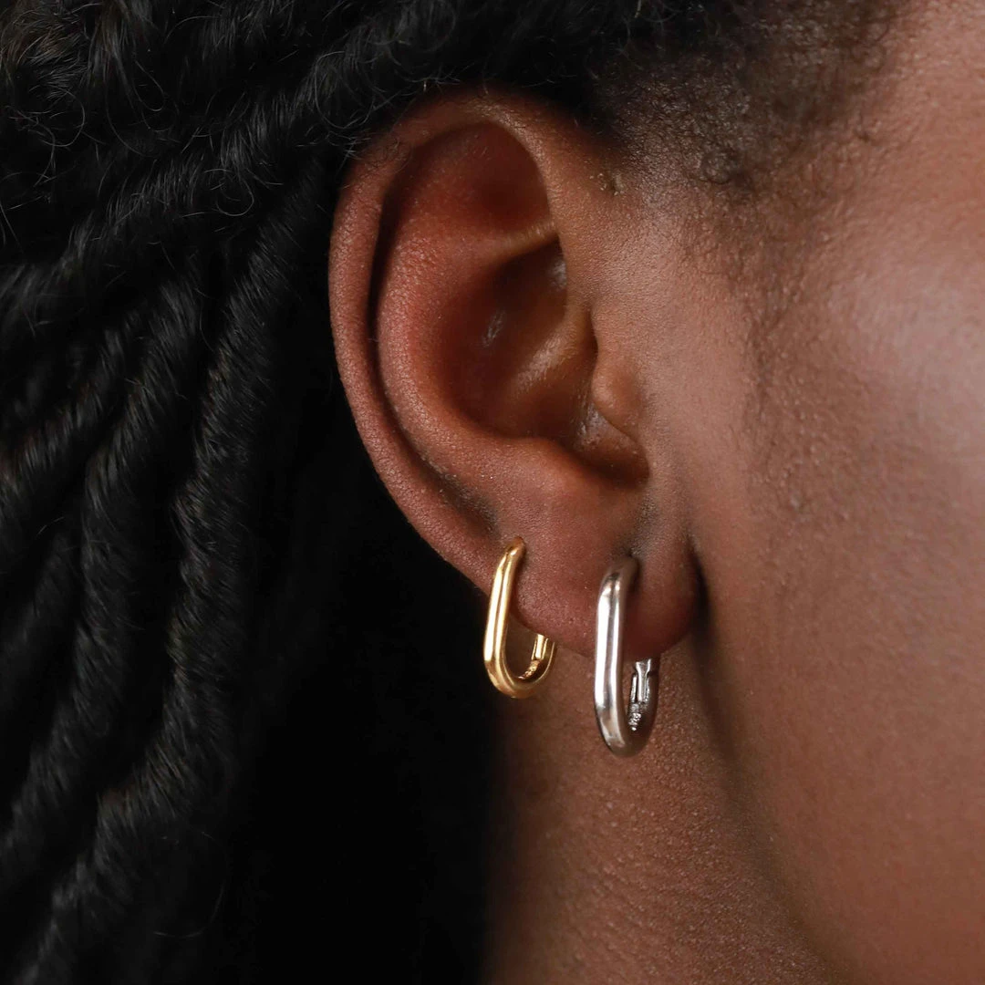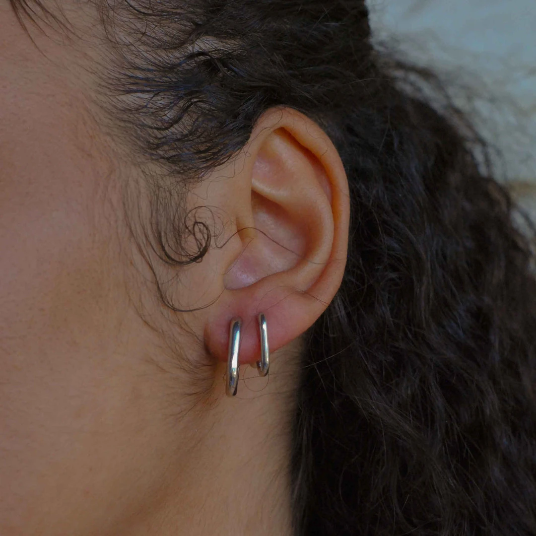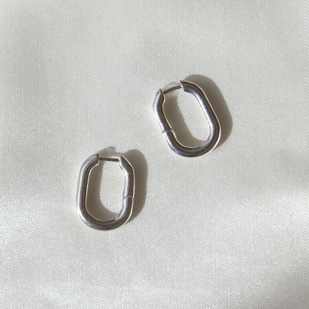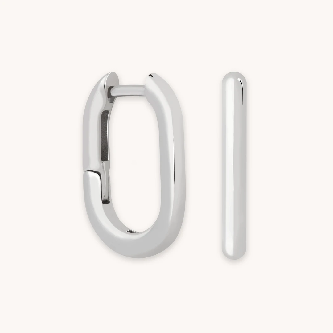 Angular and chic, the Rectangular Hoops in Silver are a modern play on the classic silhouette. Guaranteed to be your new obsession, wear these with chunky chains for a simple and sophisticated look.Â