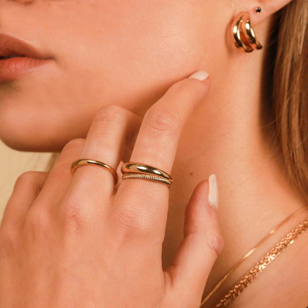 Ring stacking tip: get a staple ring that will go with any ring combo. Introducing the Essential Dome Ring in Gold ~ the simple staple everyones need in their collection. It’s in a statement dome shape, which can be easily styled with any other style. What more could you want?