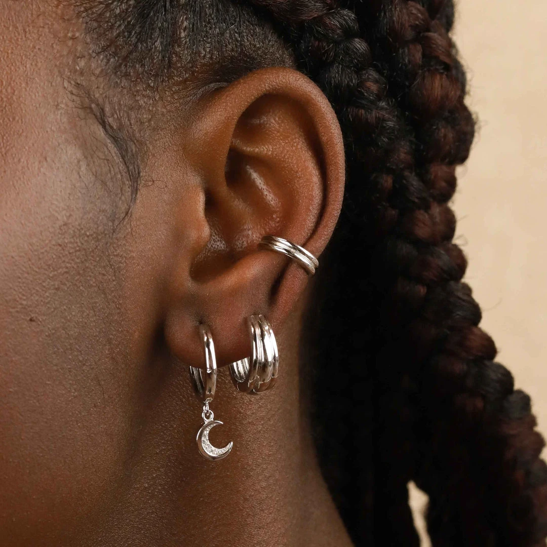 A considered classic to stay in your jewellery box season after season ~ the Ripple Ear Cuff in Silver is an ear stack must-have. The texture results in a look of two ear cuffs, perfect for achieving the stacked-up look (with minimal effort). This will go with literally everything in your jewellery collection, or you can pair these with the Ripple Hoops for a coordinated look.