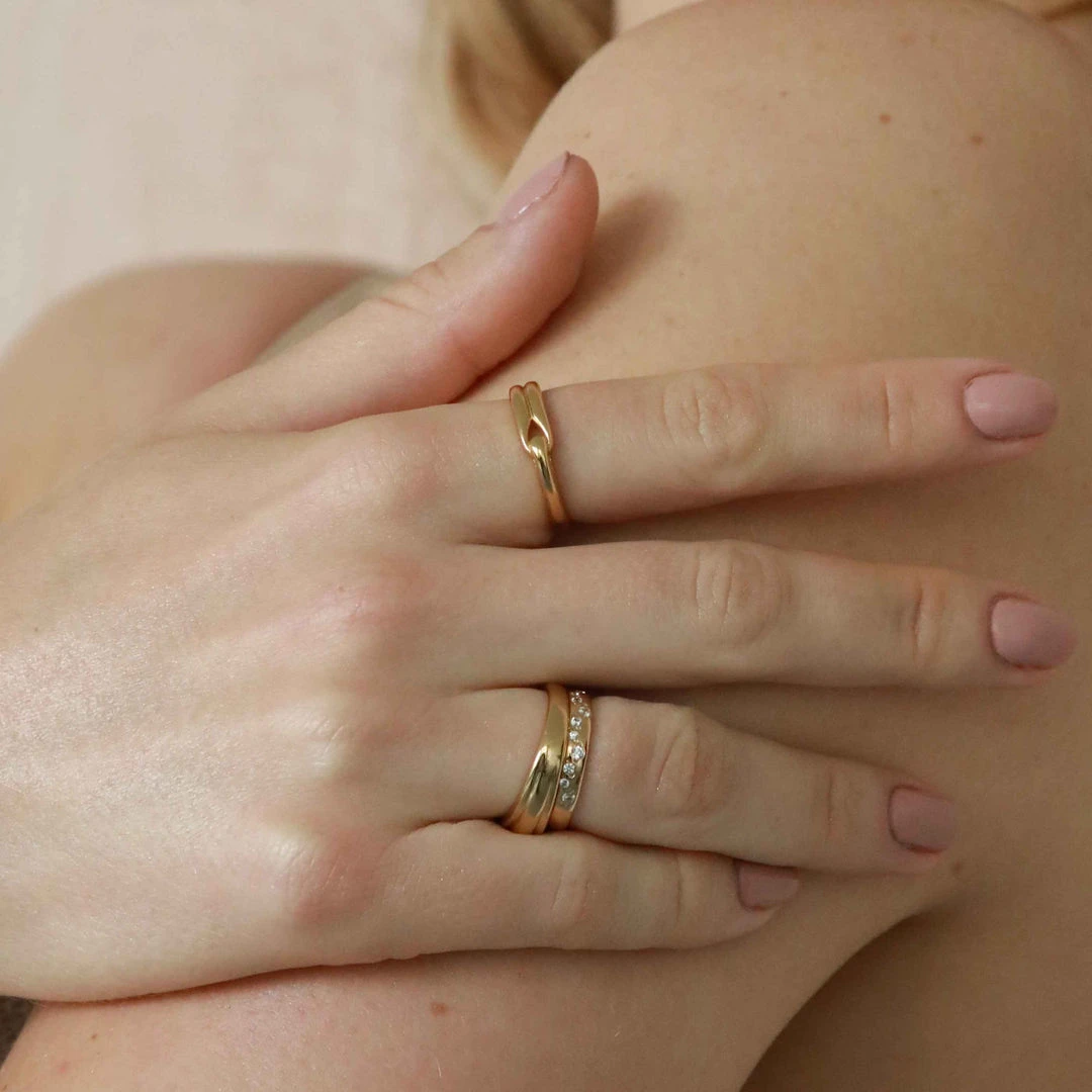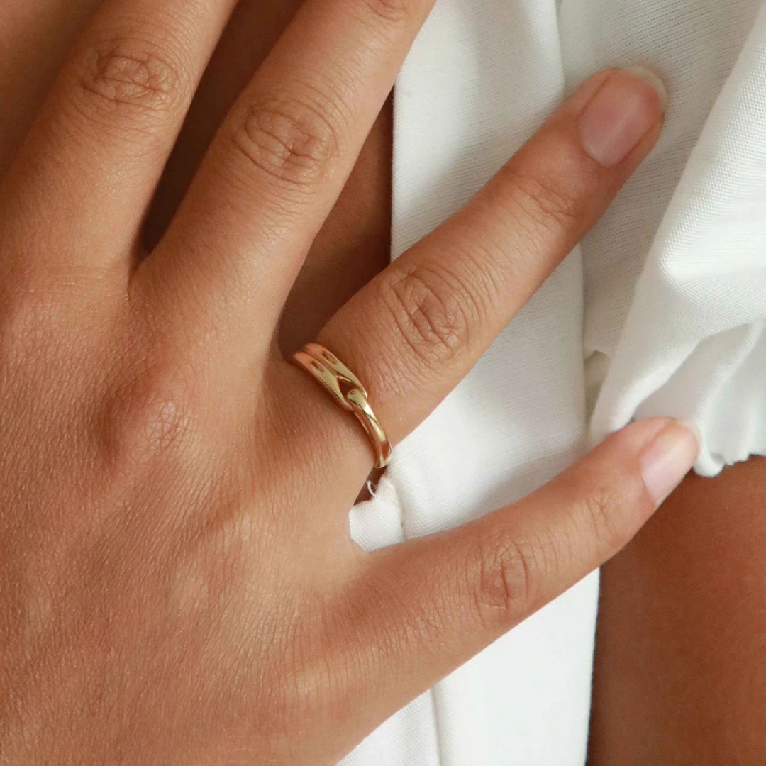 Oh this? Thanks, it’s recycled. The Infinite Ring in Gold is made from recycled sterling silver, so you can ring stack the conscious way. In a slightly chunky style, it features a looped design for a statement vibe. You can wear it alone, or stack with the Ara Ring for a fully-recycled stack.