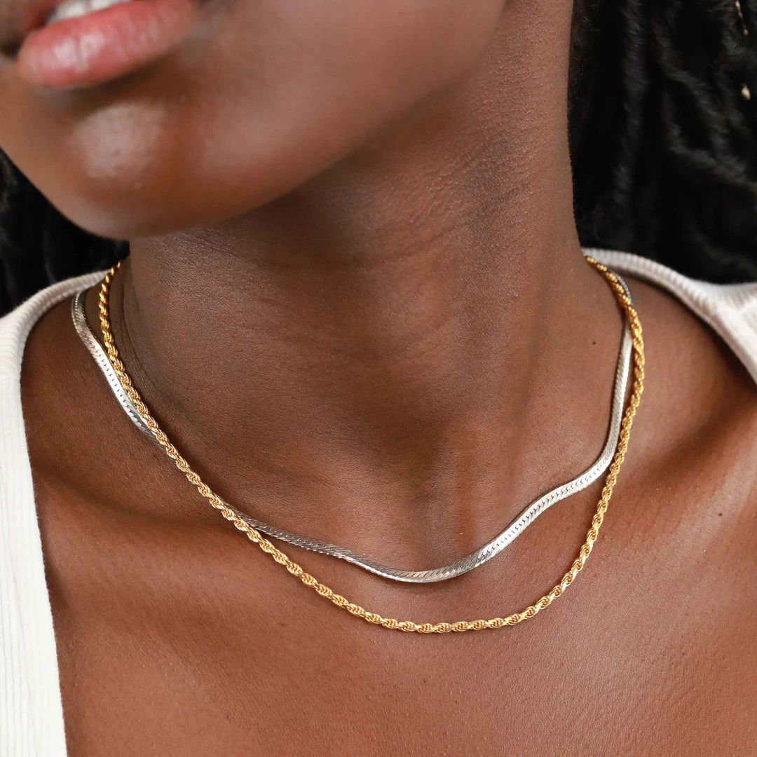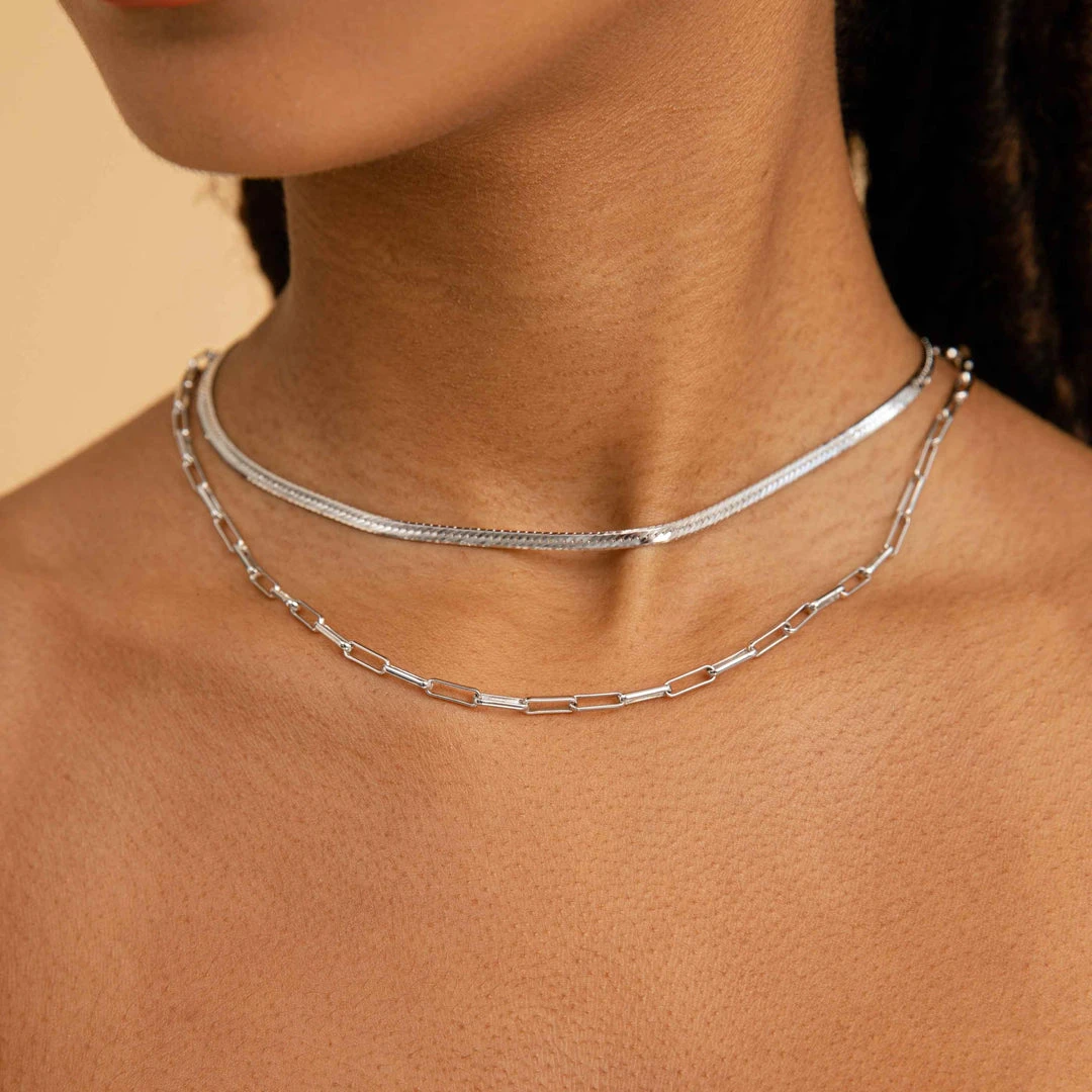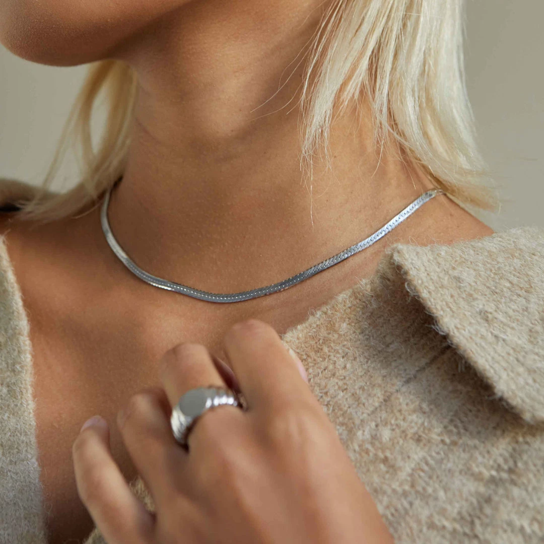 The chain necklace reign is still going strong, and the Snake Chain Necklace in Silver is the newest addition to our collection. Totally unique, this is a staple piece that everyone needs in their jewellery box. Wear with chunky chains, dainty chains, pendants – the list goes on…Â