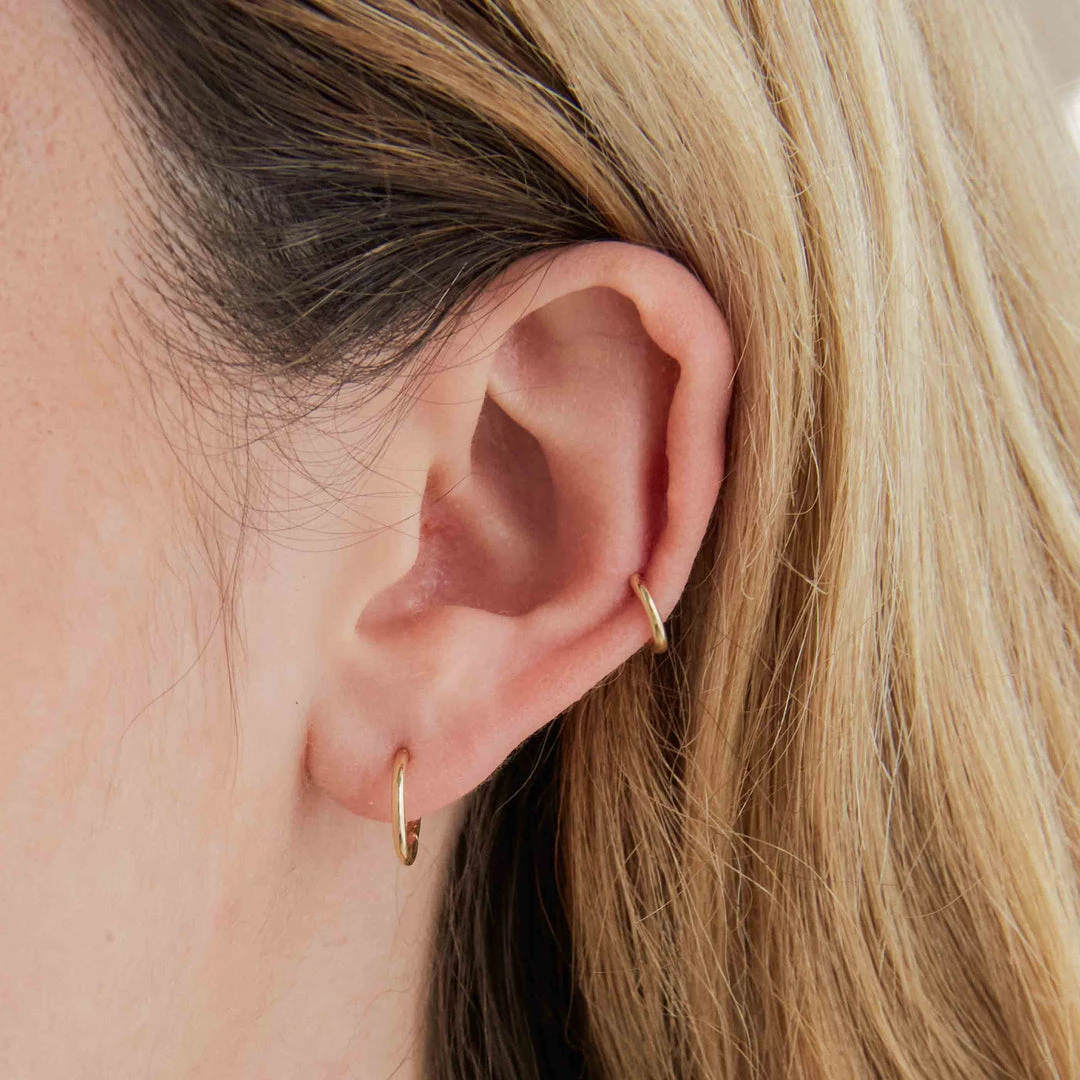 A stacking staple you’ll keep forever ~ introducing the Solid Gold Simple Piercing Hoop. You can choose between 6mm & 8mm (depending on your desired fit) and wear this hoop in your lobe or helix piercings.