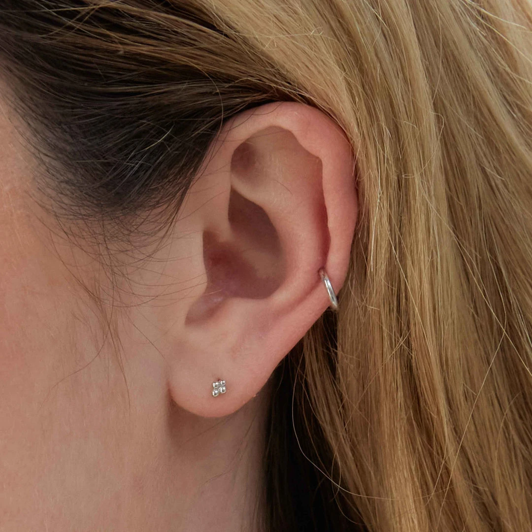 Dainty details for your stack ~ the Solid White Gold Beaded Piercing Stud is for the minimalists. It features a chic beaded design, so it will fit in with your existing earrings with ease. Wear this in your lobe, tragus, conch or helix piercing.