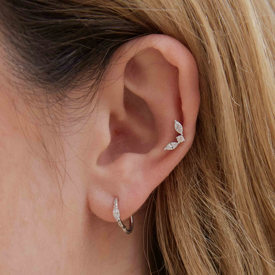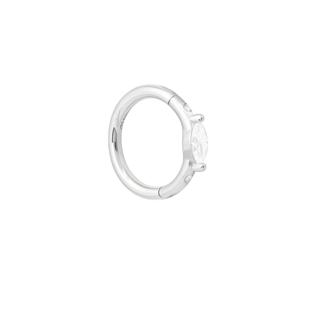 Give your piercings the sparkle they deserve ~ the Solid White Gold Marquise Piercing Hoop features a statement crystal inlay to make all your other earrings jealous. It will stack with your existing A&M earrings with ease. We recommend wearing this in your lobe or helix piercings.