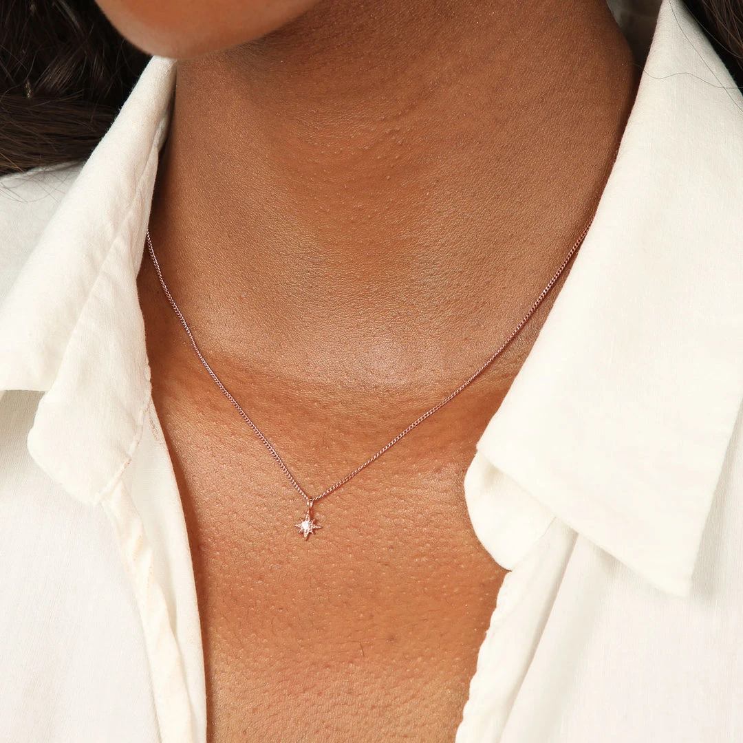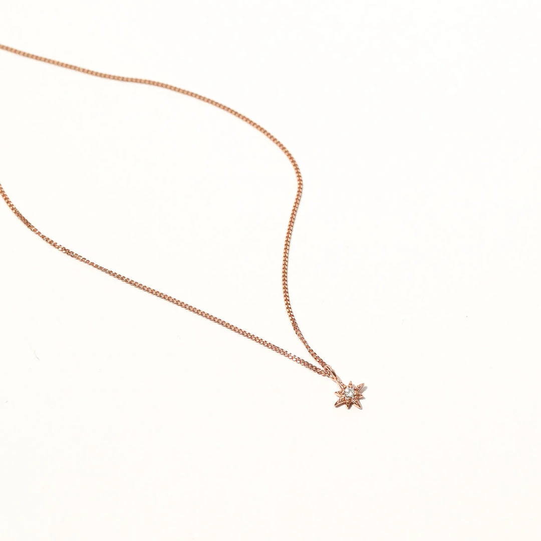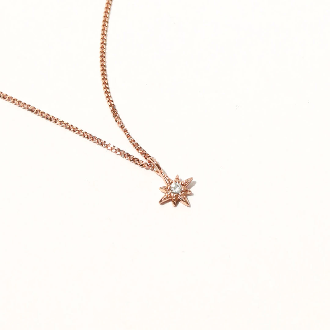 Mystical details, forever and always. The Twilight Star Pendant Necklace in Rose Gold is an A&M classic style, featuring a dainty star pendant with a teeny cubic zirconia. Wear it alone for a sleek look, or layer with other pendants and chain necklaces for a stack as bright as the night sky.