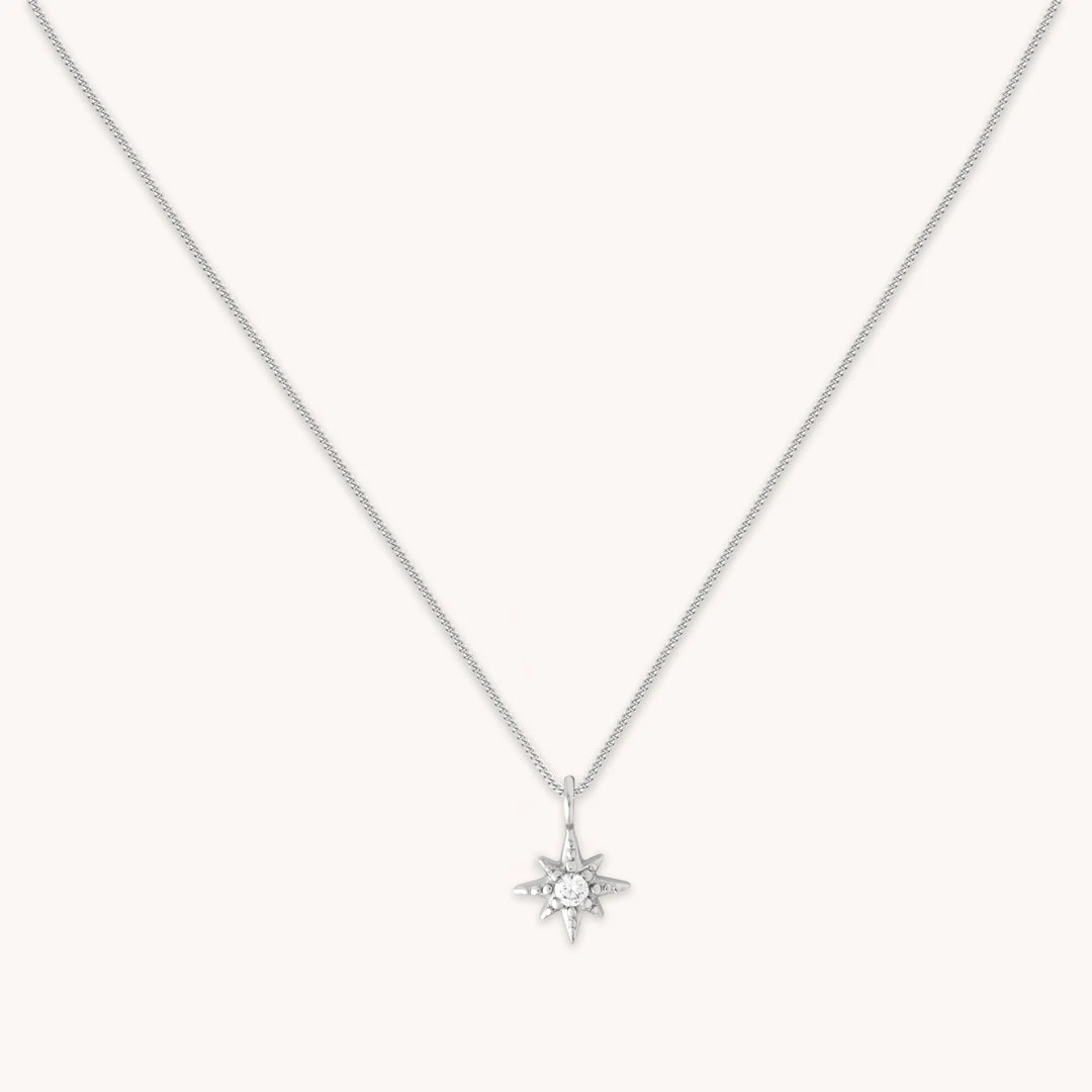 Mystical details, forever and always. The Twilight Star Pendant Necklace in Silver is an A&M classic style, featuring a dainty star pendant with a teeny cubic zirconia. Wear it alone for a sleek look, or layer with other pendants and chain necklaces for a stack as bright as the night sky.
