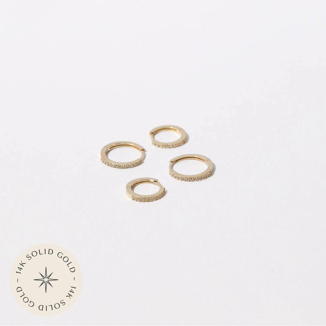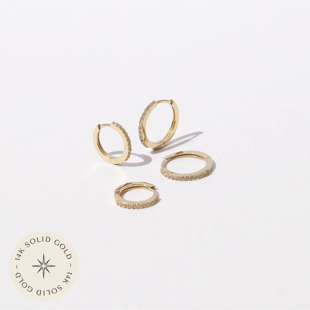Why have 1 when you could have 2? The White Topaz Hoop Stacking Set in Solid Gold features our best-selling hoops in 2 different sizes, so you can achieve the perfect ear stack. Plus, White Topaz stones promote clarity of thought, which is why they’re known as the stone of manifestation.