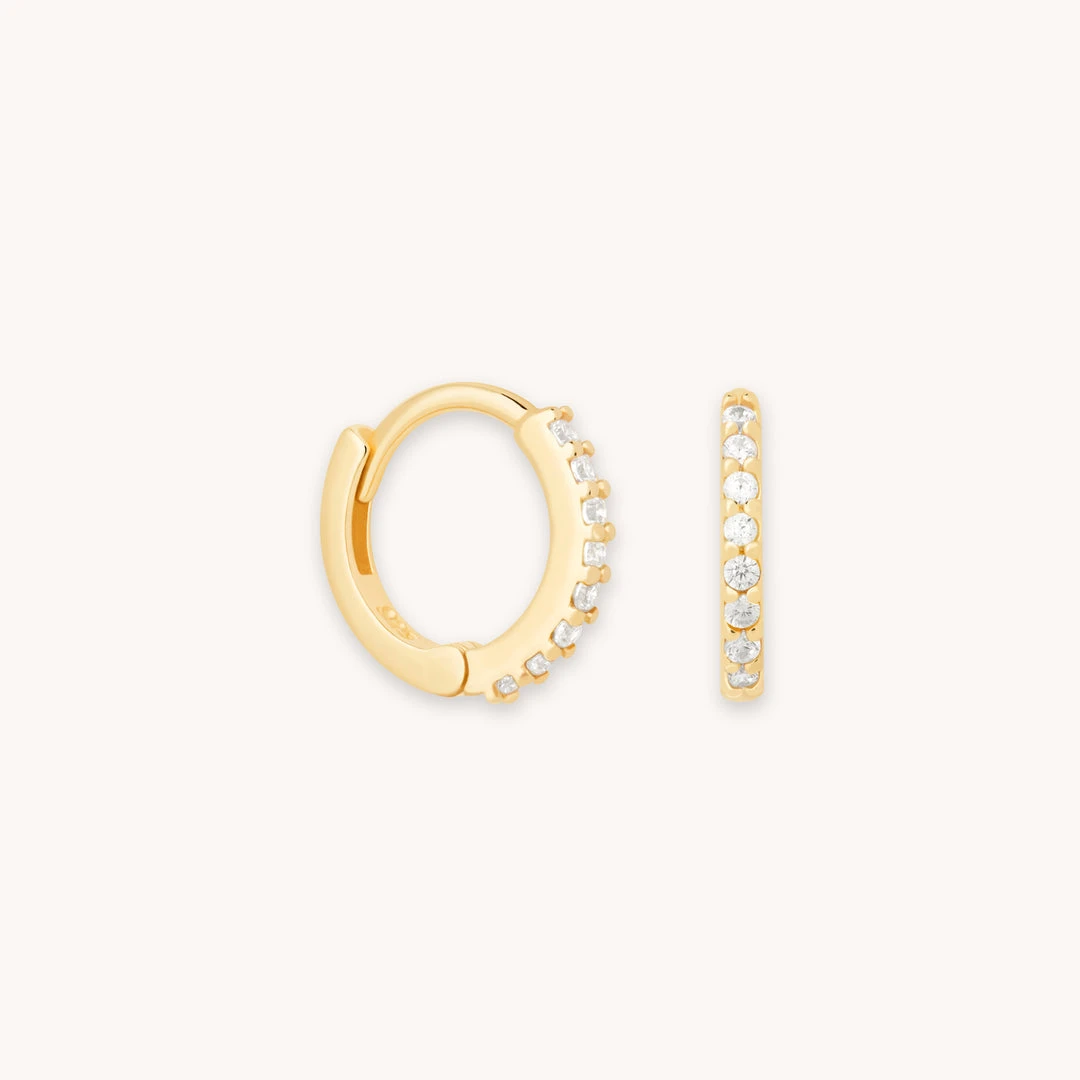 Give your stack the sparkle they deserve with these Crystal Jewelled Huggies in Gold. Paved in sparkly cubic zirconias, you can wear these huggies alone for a subtle sparkle or stack them with the matching studs.