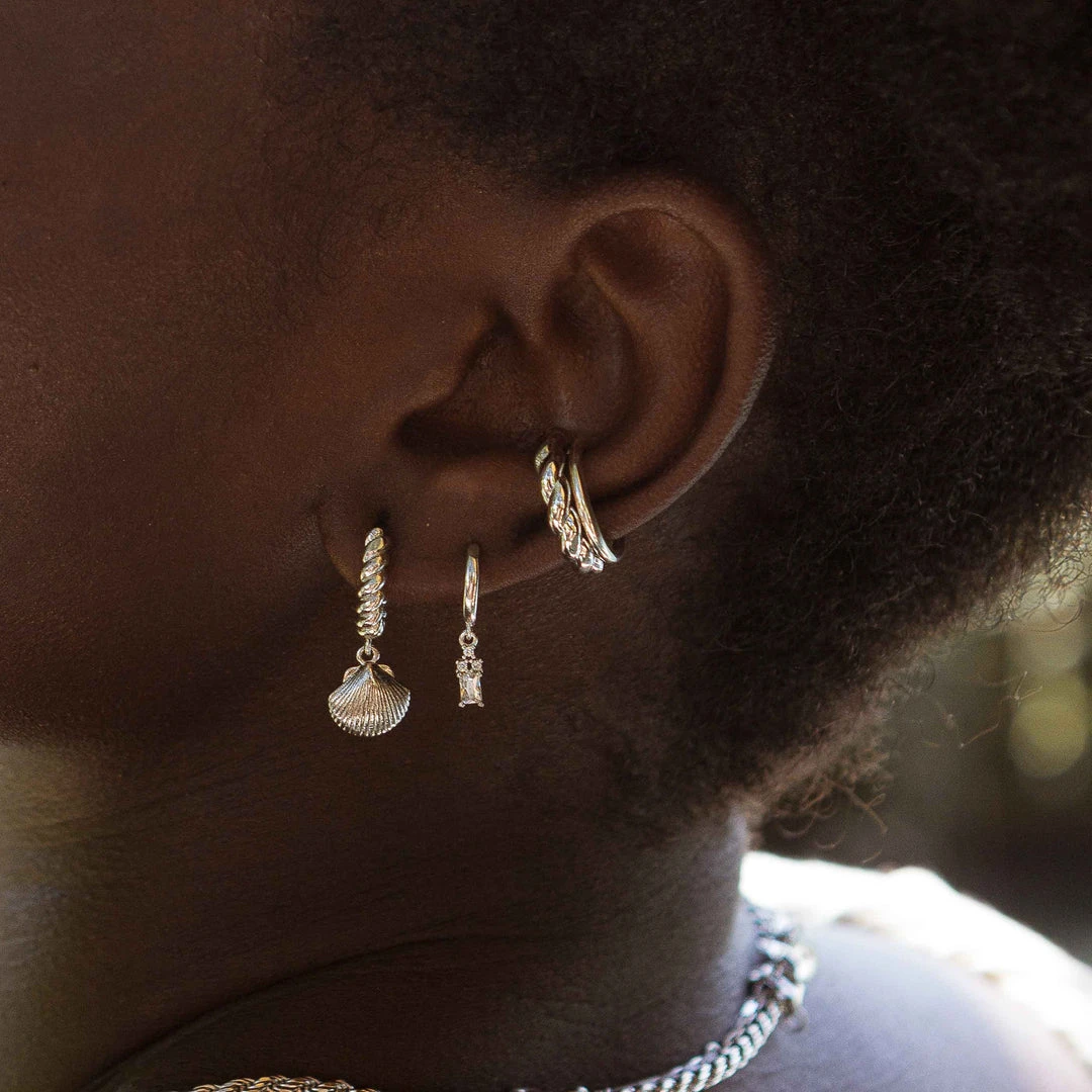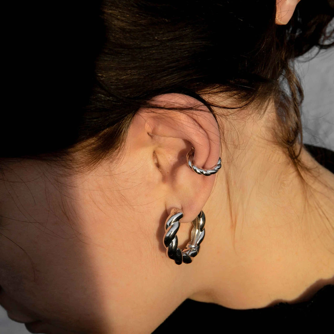 Looking for a statement piece to complete your stack? Look no further, the Chunky Rope Ear Cuff in Silver is here. Twisted and in a shining finish, this is best worn with a pair of chunky hoops – but let’s face it, what isn’t?