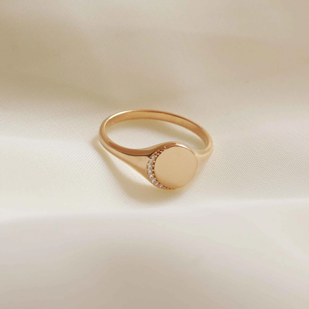 A timeless treasure ~ the Crystal Crescent Signet Ring in Gold is a piece to hold onto forever. In a classic signet style, this will never go out of style. It’s got a crystal crescent detail across the side to add a subtle A&M sparkle. Engrave it to make it yours, and remember special moments just by glancing at your hands. Wear on its own, or wear stacked with our other rings for a statement vibe.