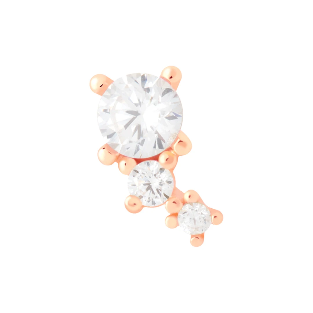 Super dainty, super cute, the Crystal & Double Stone Barbell in Rose Gold may be small, but it’s mighty. Three cubic zirconias descending in size makes for a constellation vibe, which looks perfect paired with dainty huggies and chunky hoops.Â