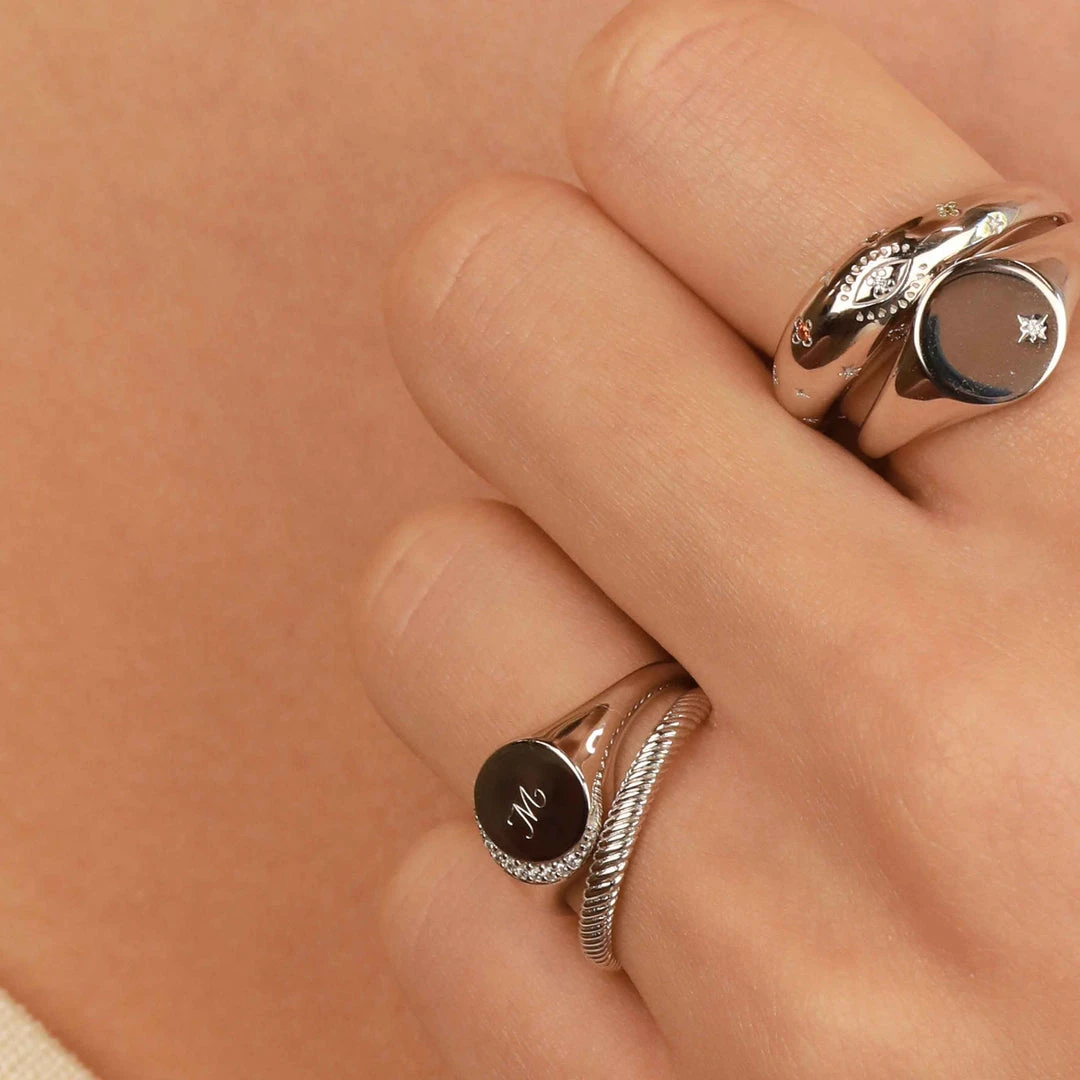 Make it your own ~ the Crystal Set Signet Ring in Silver is designed to be personalised. Signets are known for being classic & timeless, and this ring is no exception. Better yet, it’s even got a dainty cubic zirconia inlay to add a little sparkle. Engrave it to add your own personal touch, and then wear again and again and again. Stack it with our other rings for a curated look.