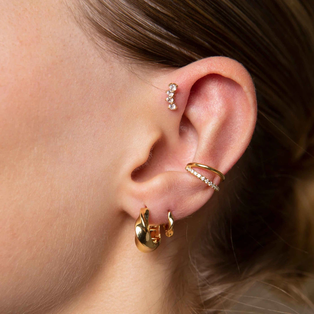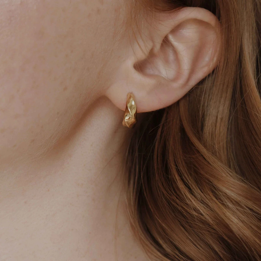 Beautifully unique, the Elemental Hoops in Gold brings a sculptural texture to your ear stack. These hoops are statement & curvy in all the right places. So whether you’re wearing them alone, or with huggies & barbells in your other piercings, they will always be an eye-catching addition. Want to complete the look? Wear these hoops with our Elemental Huggies & Elemental Ring for a full Una Collection moment.