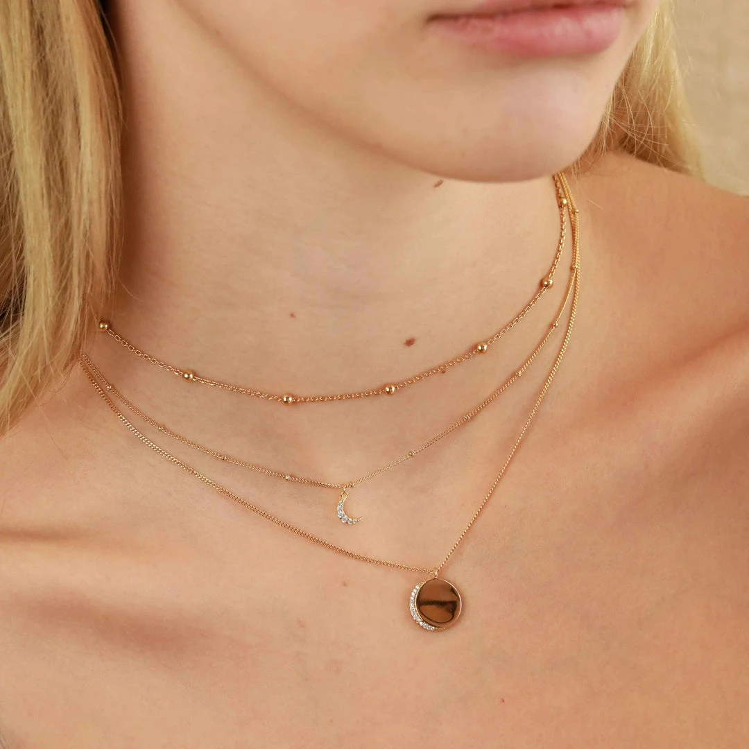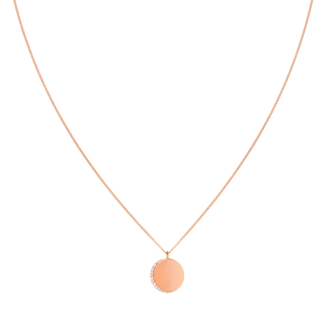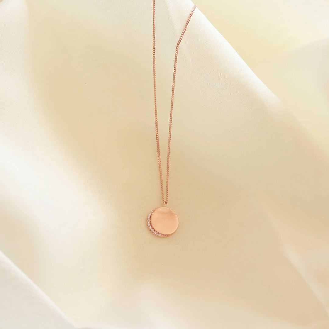 Get up close & personal with our Crystal Crescent Pendant Necklace in Rose Gold ~ engrave it to make it truly yours. On a dainty chain, the pendant is in a classic design with a cubic-zirconia paved crescent to add sparkle to your neck stack. The design is timeless & chic so you can wear it all day, everyday. Either wear it on its own, or layer it with our chokers & chain necklaces.